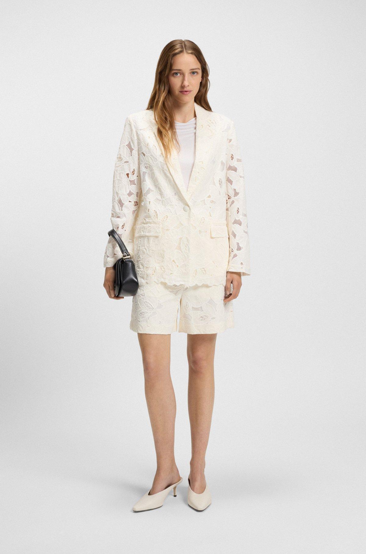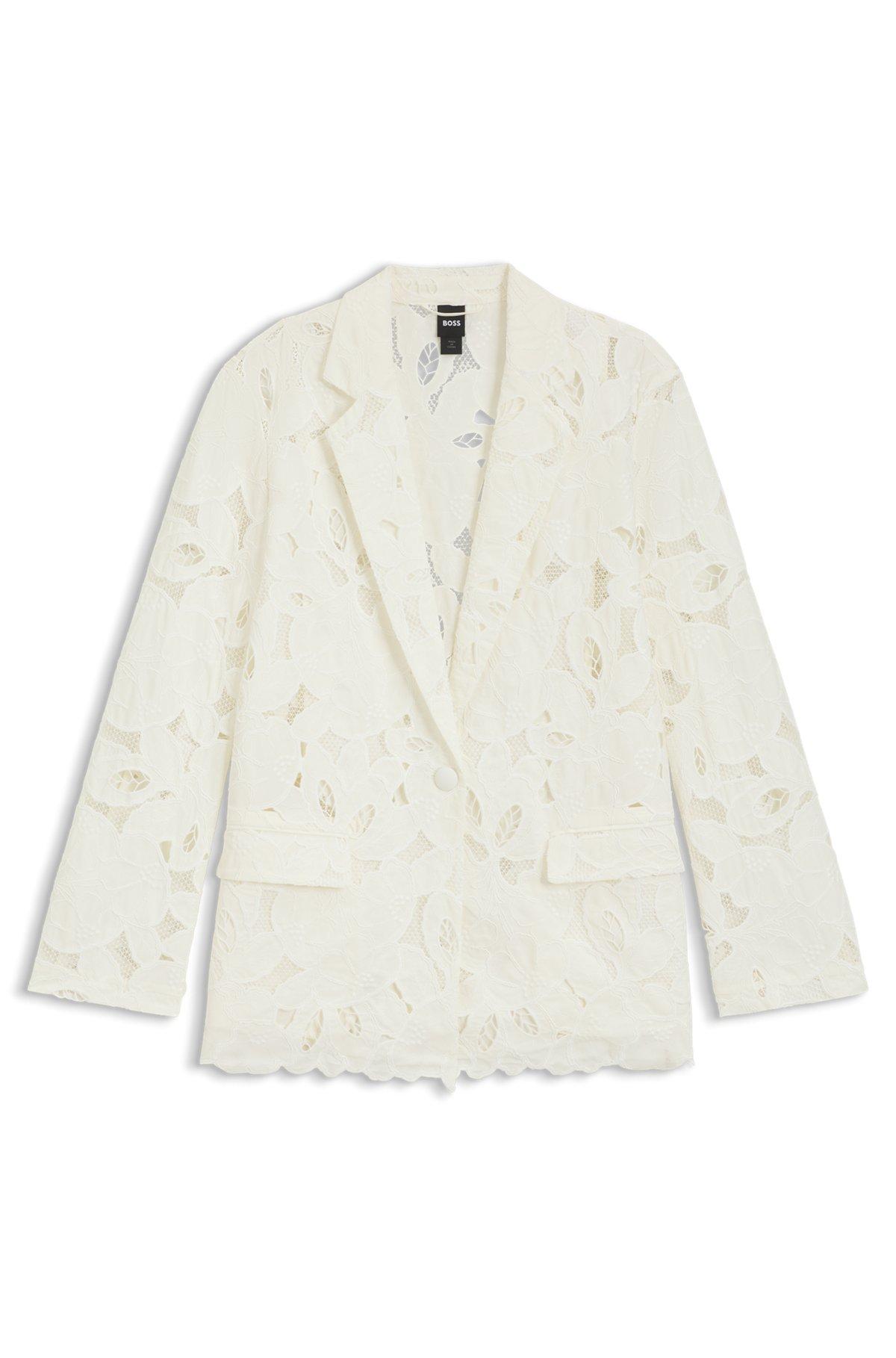 With elegant embroidery, this BOSS Womenswear blazer is crafted in an extra-soft bamboo blend. Modern laid-back fit with a single-button closure.