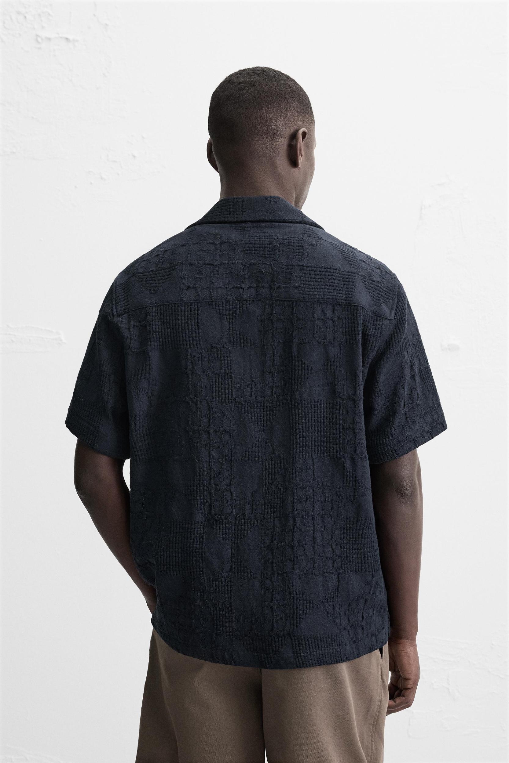 Relaxed fit shirt made of viscose and cotton blend fabric. Spread collar and short sleeves. Hem with side vents. Front button closure.