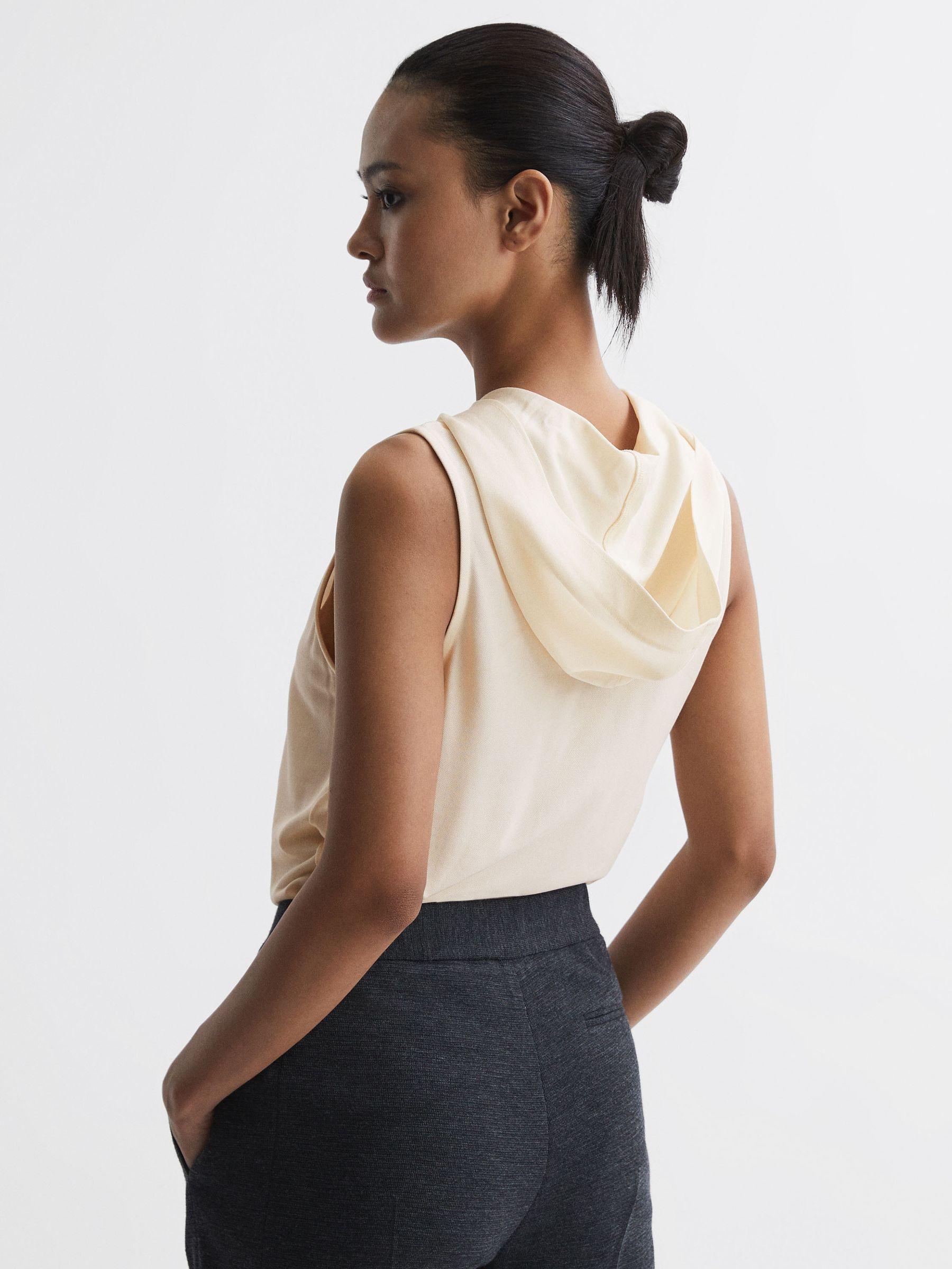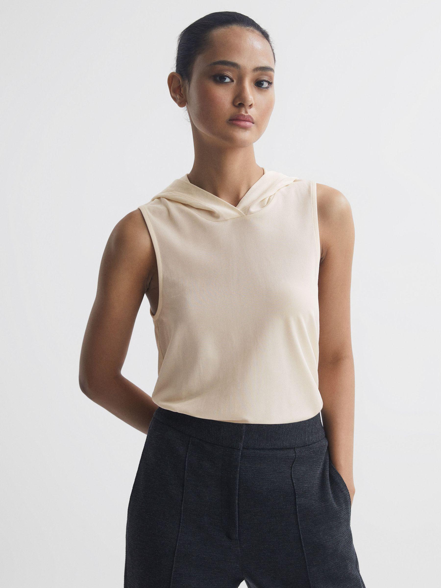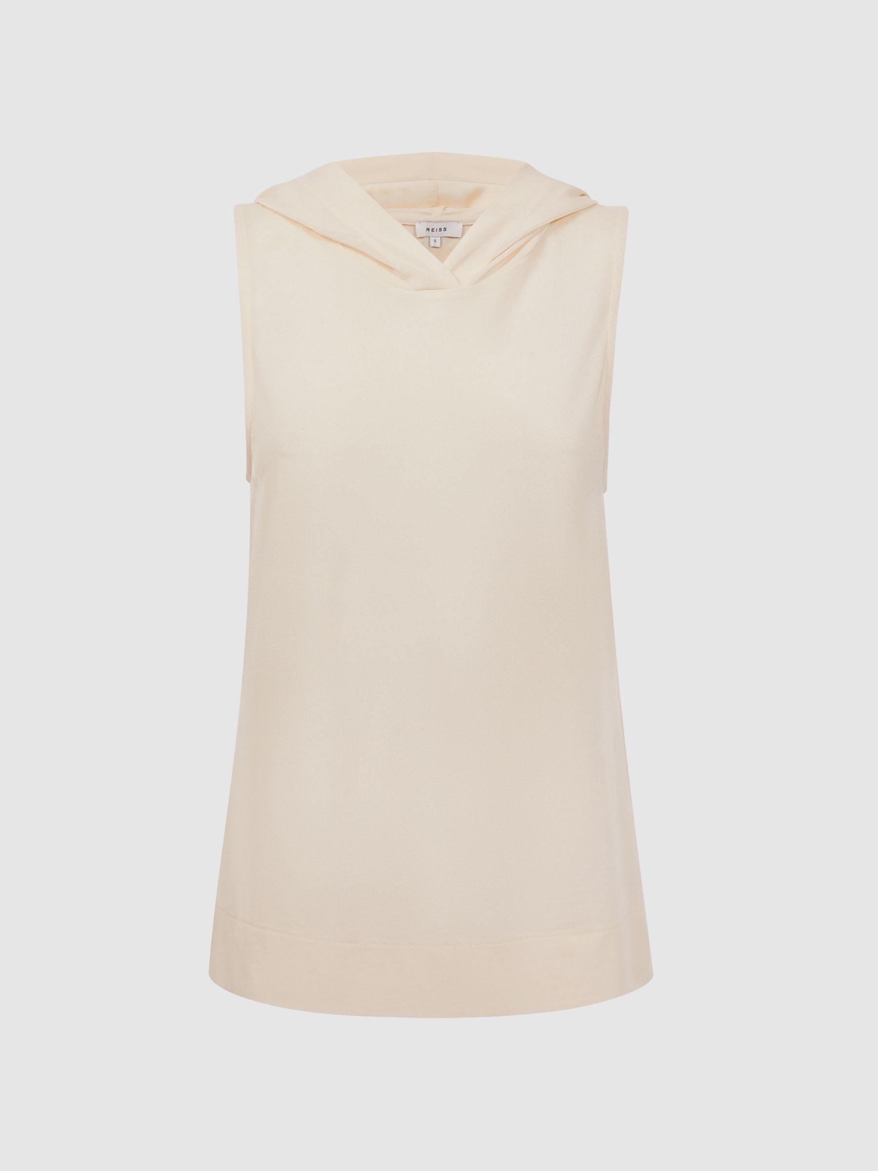 The cream Hayley Hoodie is an up-to-date take on loungewear. It s a relaxed, sleeveless shape which is ideal for wearing alone or layering over a plain T-shirt. Tuck into trousers and throw on a blazer to give an elevated finish. Hooded. Sleeveless. Relaxed fit.