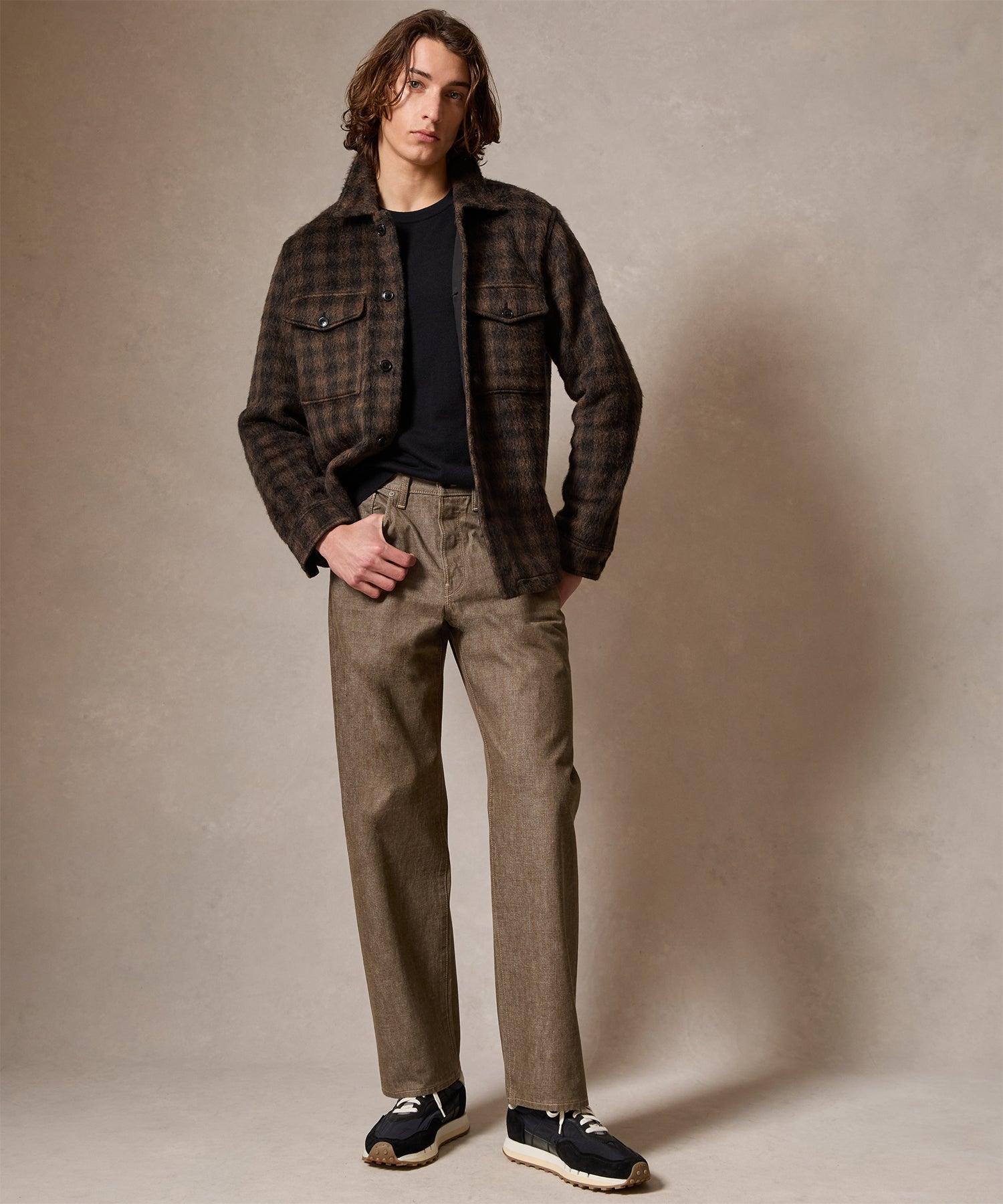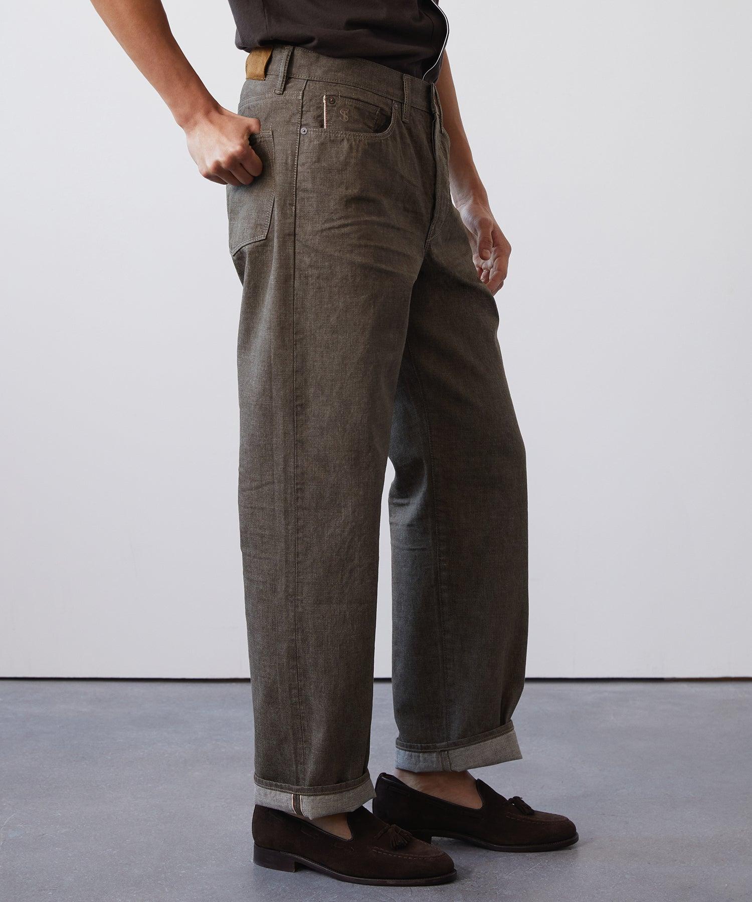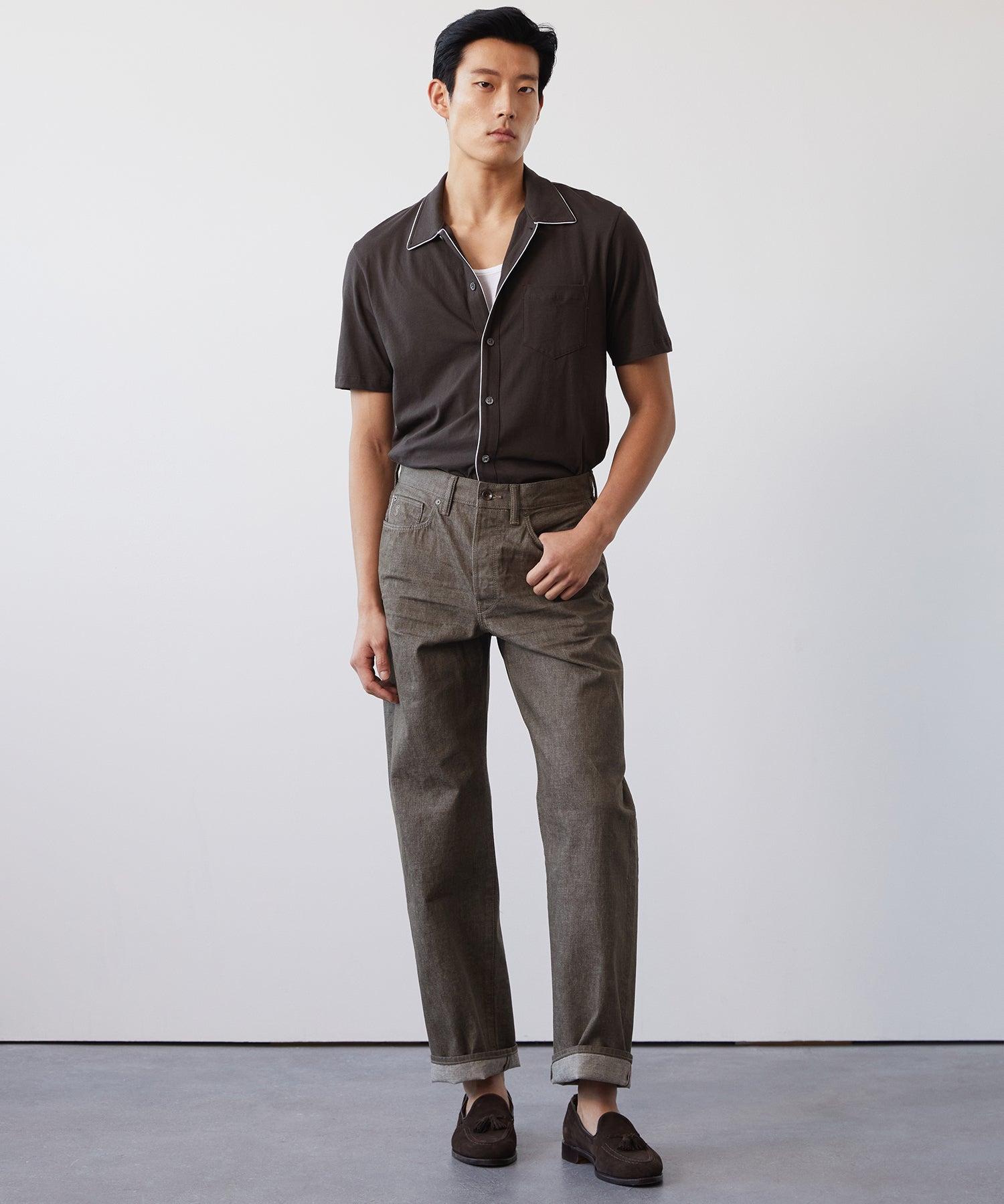 Our denim comes in distinct categories (Stretch, Selvedge and Small Batch), for the same reason that sometimes you want an artisanal sipping whiskey, and others a draft beer. The Relaxed Fit Whiskey Lightweight Denim is part of our Small Batch series. It is loaded with quality details including a shank button fly, oxidized rivets, chain-stitched embroidery, a selvedge locker loop inside the back waist and selvedge outseams. So when you turn up the cuff, you’ll see the giveaway red ticking on the edge. Crafted from a Japanese Selvedge denim that is spun on old-fashioned shuttle looms, this is woven from a natural white cotton yarn that hasn’t been dyed, so the color is more of an off-white. The weight is an ounce lighter than our typical jean making it a chic choice for spring-summer. 100% cotton 11oz denim Relaxed Fit Leg Opening (Based on Size 32W): 18.5” Imported Japanese Selvedge Genuine Selvedge Shank button fly Classic 5-pocket construction Antique rivets Chain-stitched embroidery Machine Wash Made in Vietnam JE120317