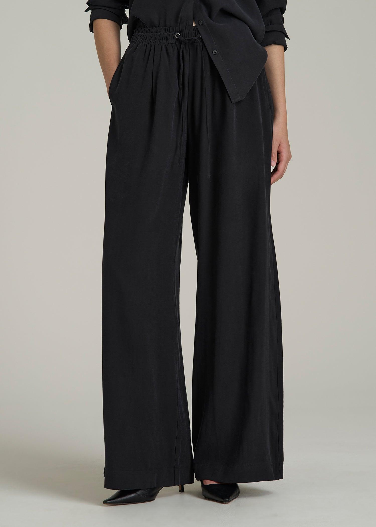 Breeze through the day in these relaxed pull-on pants for tall women. A self-drawstring and side seam pockets add function, while front pleats elevate your look. Pair them with a tucked tee or a cropped hoodie—these women’s tall pants are made for comfort.• Pre-washed to fight shrinkage• Full length for elongated style• Ultra-high rise for a confident fit