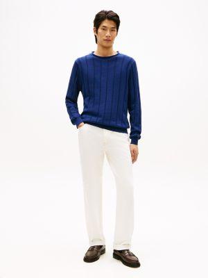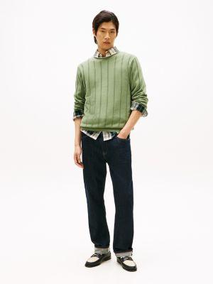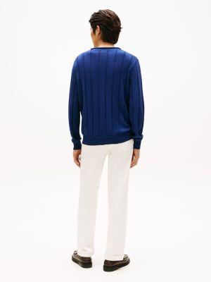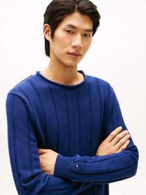 Tommy Hilfiger men's sweater. Defined by an understated rolled neckline and a textured rib-knit finish, this sweater is a wardrobe staple. Made from combed cotton, it stays soft, breathable and durable, wash after wash.