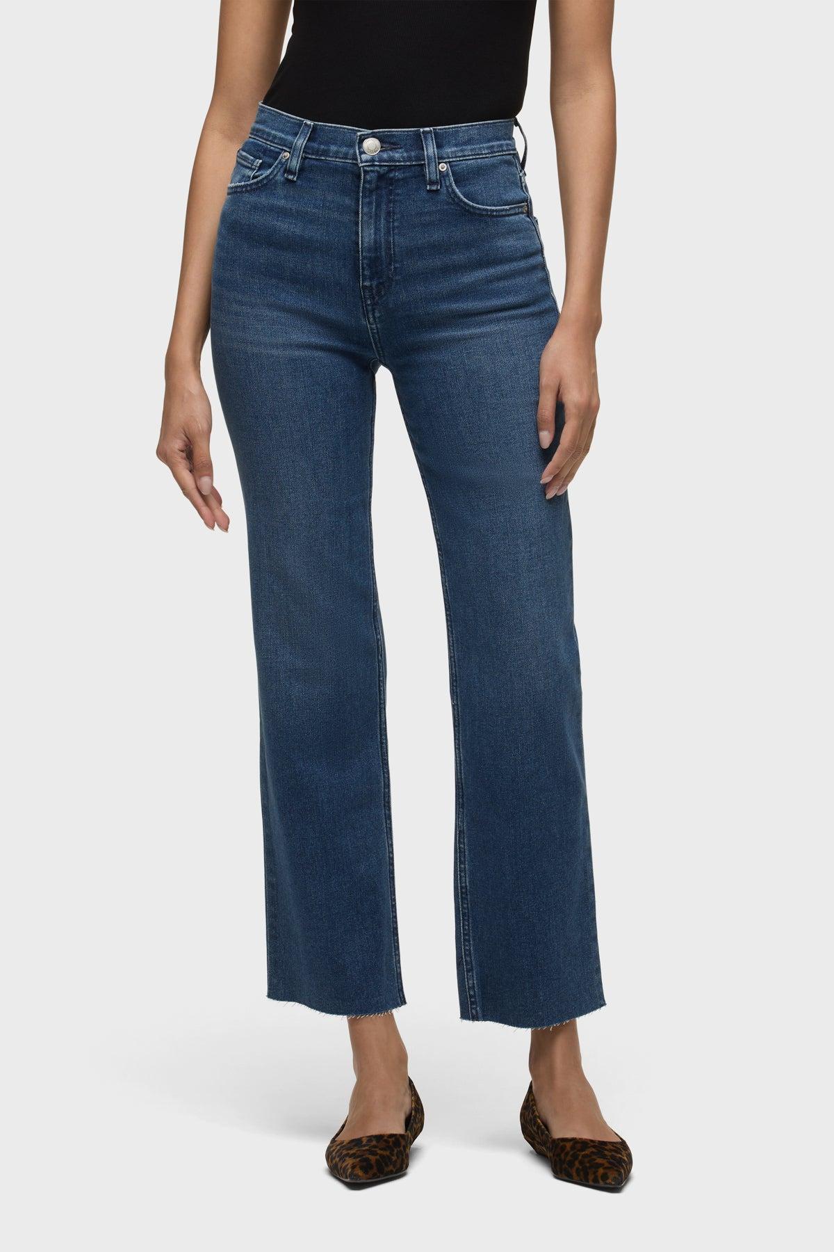 Description Our Remi High-Rise Straight Ankle Jean is cut with a flattering high rise and relaxed leg. The medium blue Deep Dive wash has grinding along the edges, raw hems and is made from premium comfort stretch denim for an authentic look with added softness and flexibility. Product Details Front Rise: 11.25", Leg Opening: 16.5", Inseam: 28"Model Height 5'9"Model wearing size 25Measurements based on size 27 Fit & Care Content: 79% Cotton, 20% Polyester, 1% ElastaneMachine wash cold with like colorsDo not bleachTumble dry low or hang to dry
