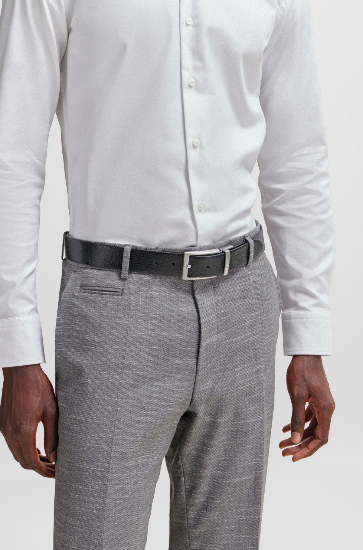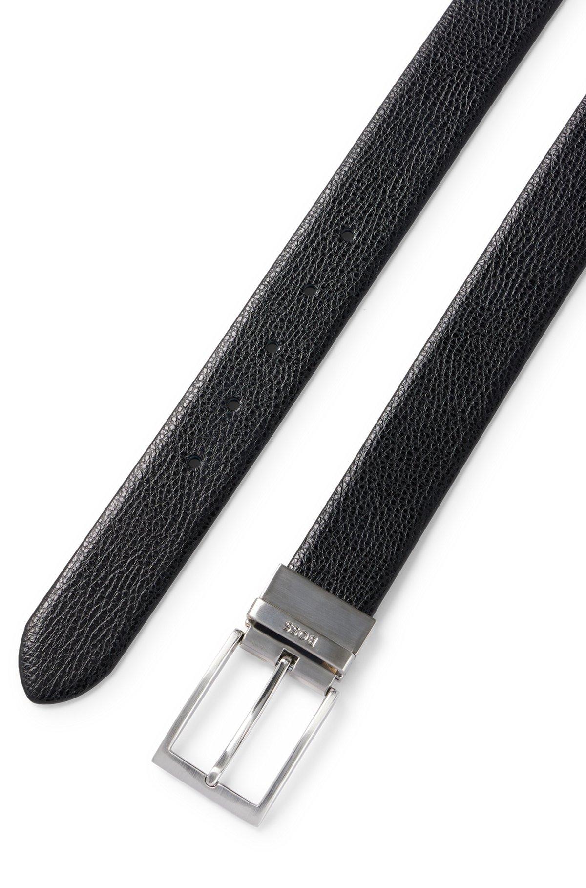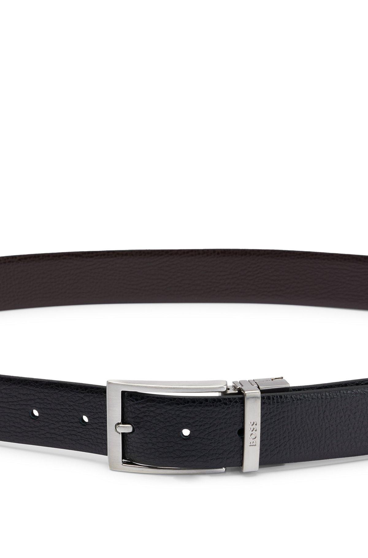 Reversible belt in grained Italian leather with logo keeper - Black Business Belts from BOSS for Men for in the official HUGO BOSS Online Store free shipping