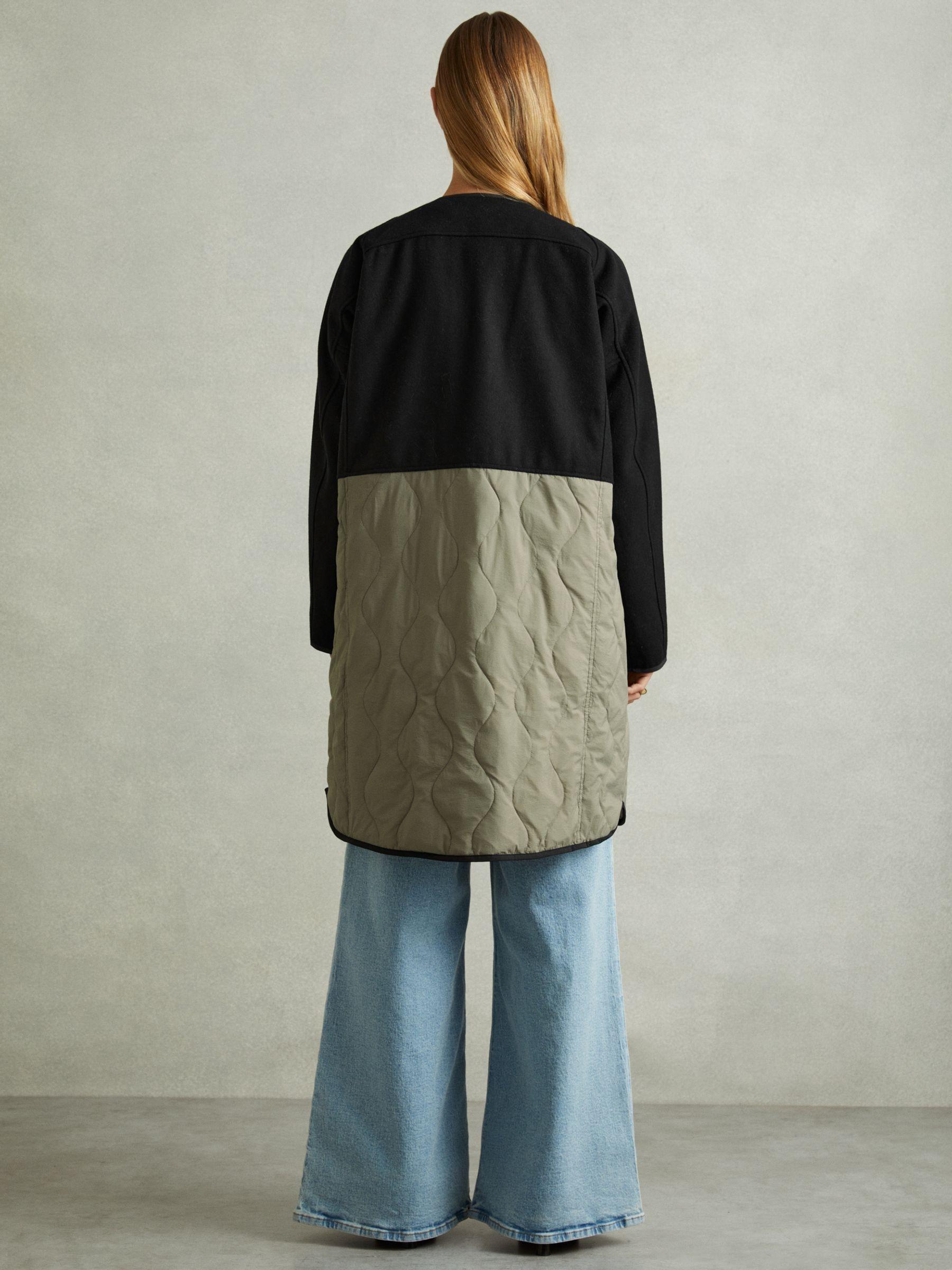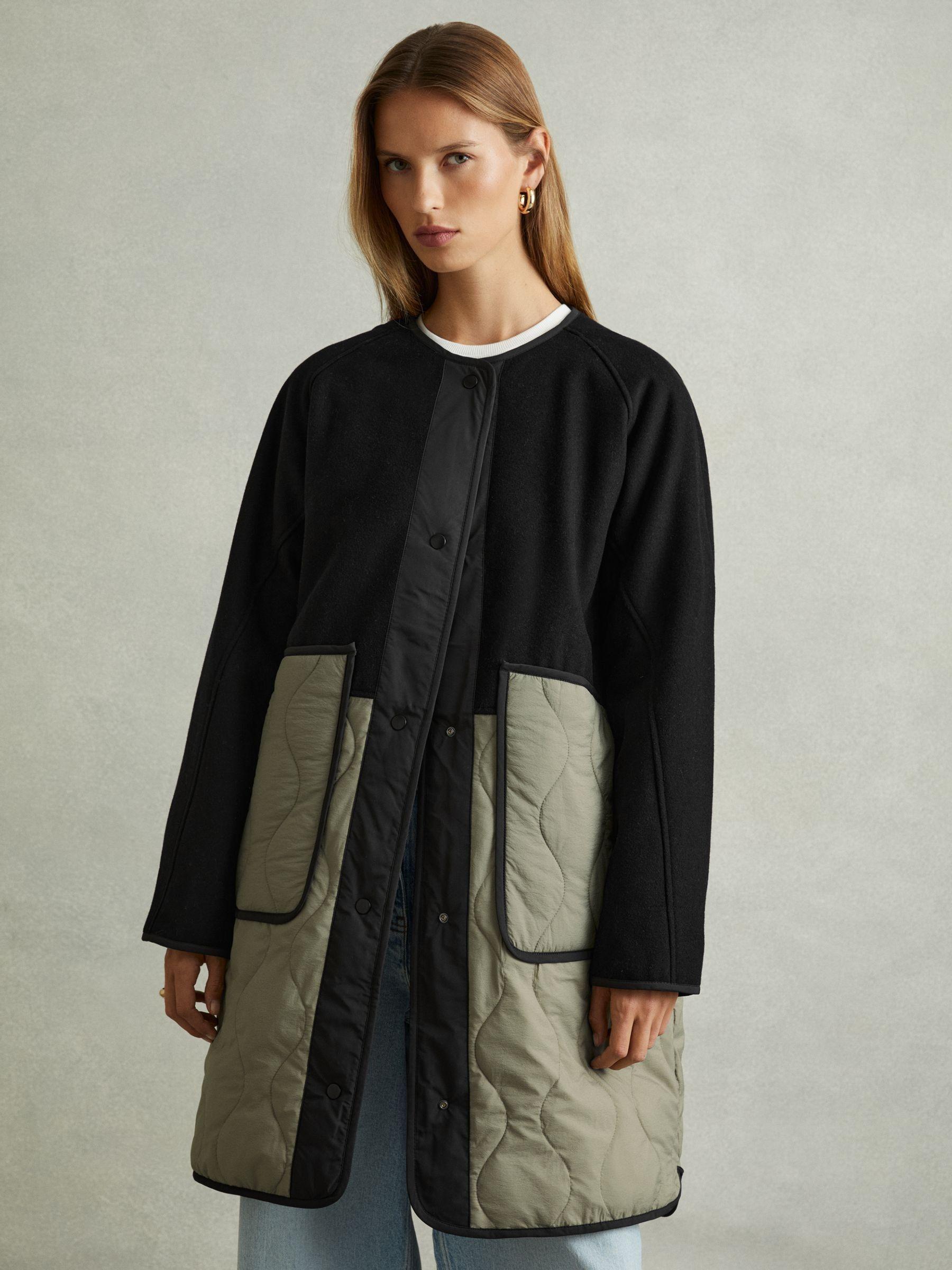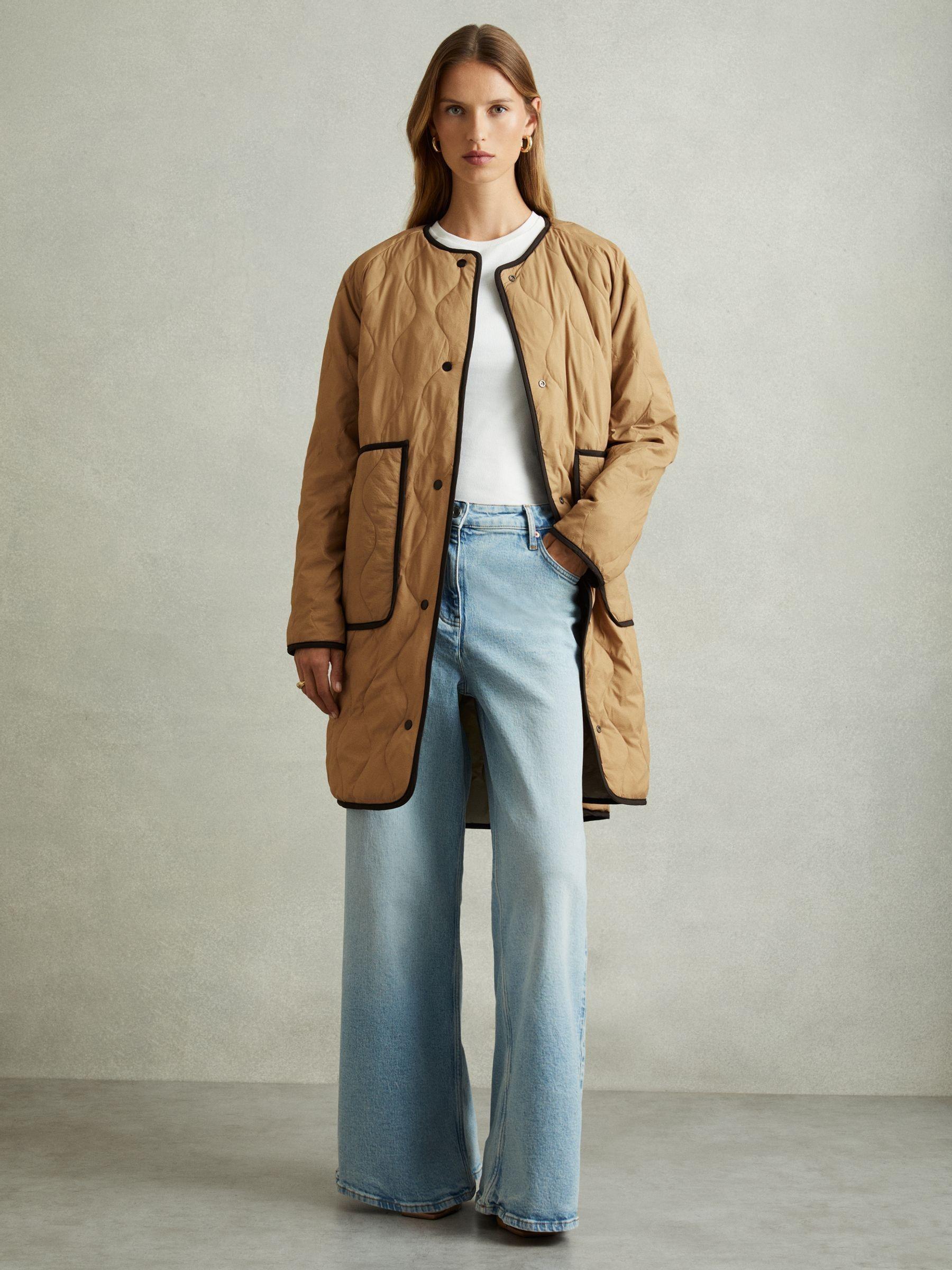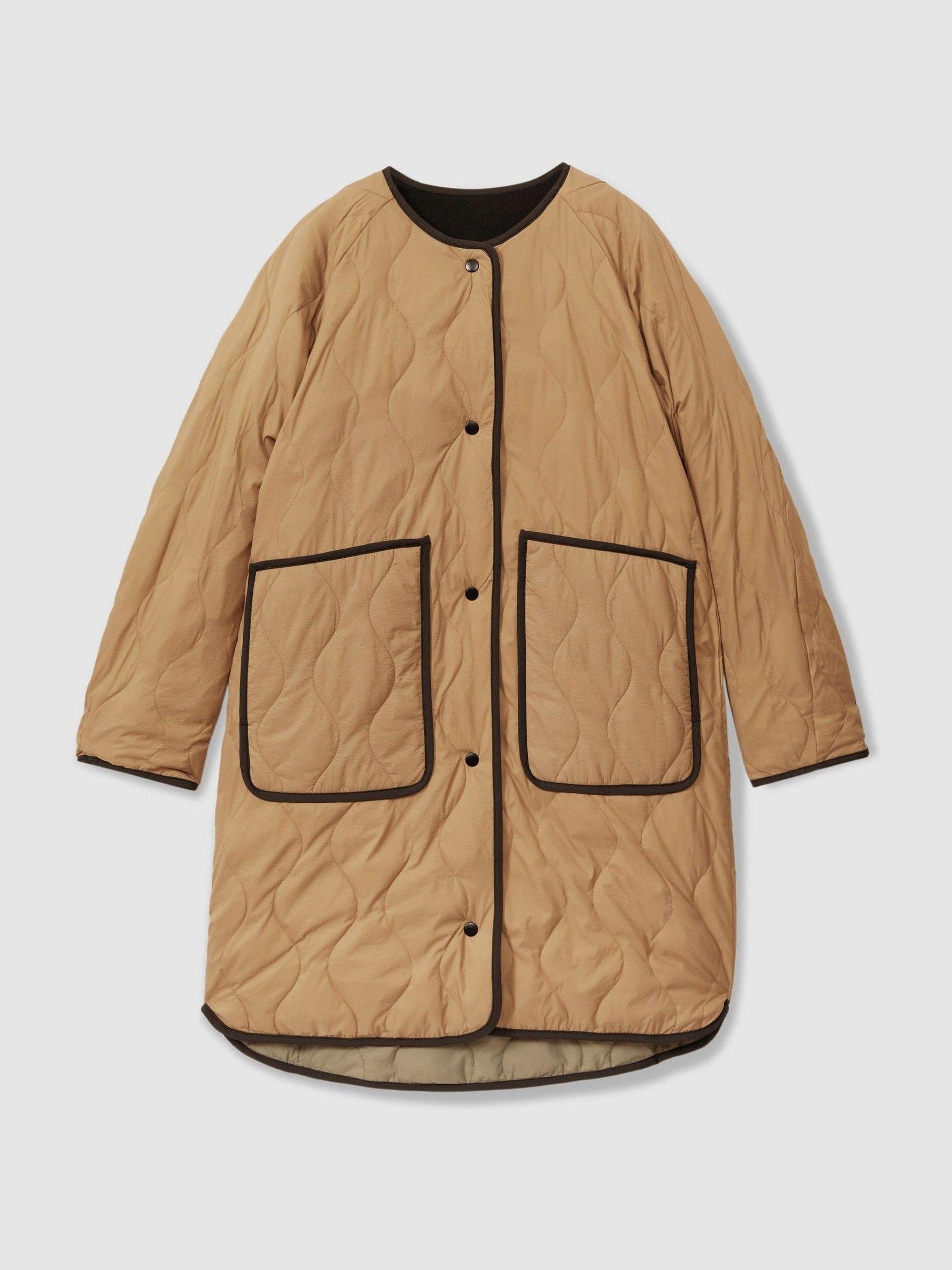 The Ollie coat has a reversible quilt design, offering you two styles in one. Worn either way, it fastens at the front with press studs and features exaggerated pockets for a playful finish. Reversible quilt design. Press-stud front closure. Exaggerated pockets. The model is wearing a size 8 Measurements of model: Height 5ft 9" / 175cm.