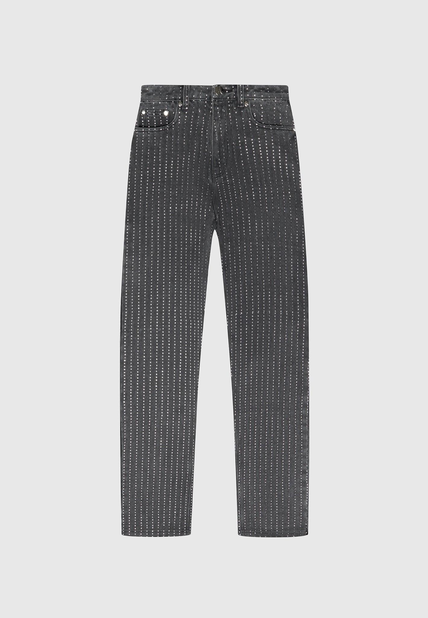 Crafted from premium material, these Rhinestone Mom Jeans in Washed Grey provide a comfortable fit with a sparkle finish for a touch of glamour. Perfect for any occasion, these jeans offer an easy transition from day to night. Mom Jeans Silhouette Rhinestone Embellishment Side Slip Pockets Back Patch Pockets Functional Fly Closure Silver Eiffel Button Detail Vegan Leather Manière De Voir Branded Patch 100% CottonAlways check the care label for wash instructions.