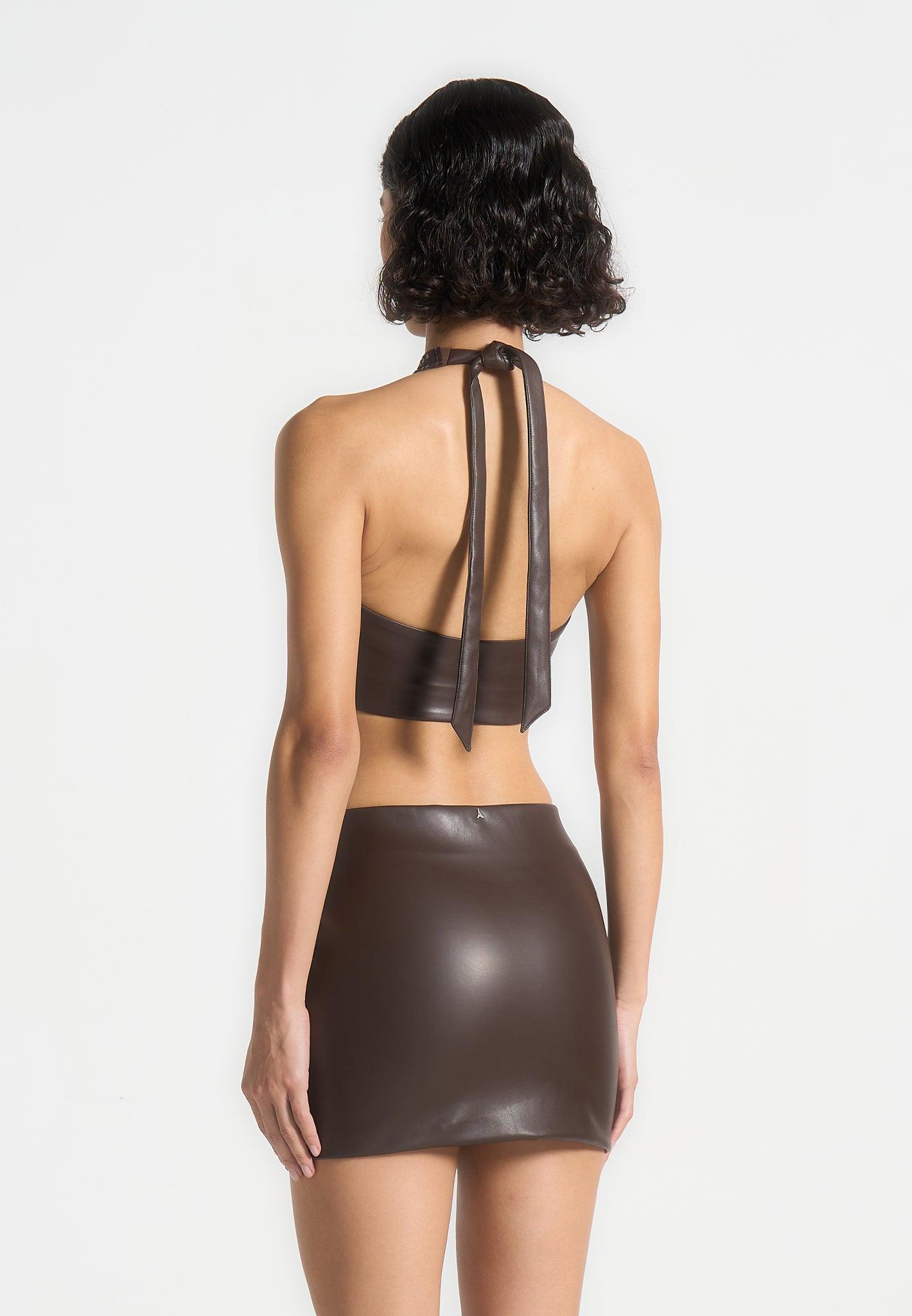 Expertly designed for maximum style, this top offers a halterneck design and a flattering hemline. With its sleek and elegant look, this top is perfect for any event and will make you stand out. Upgrade your wardrobe with this must-have piece. Halterneck Top Silhouette Self Tie at Neck Tonal Rhinestone Detailing Invisible Side Zip Dart Detailing Silver Manière De Voir Eiffel Plaque 92% Polyester, 8% Elastane / 45% PUAlways check the care label for wash instructions.