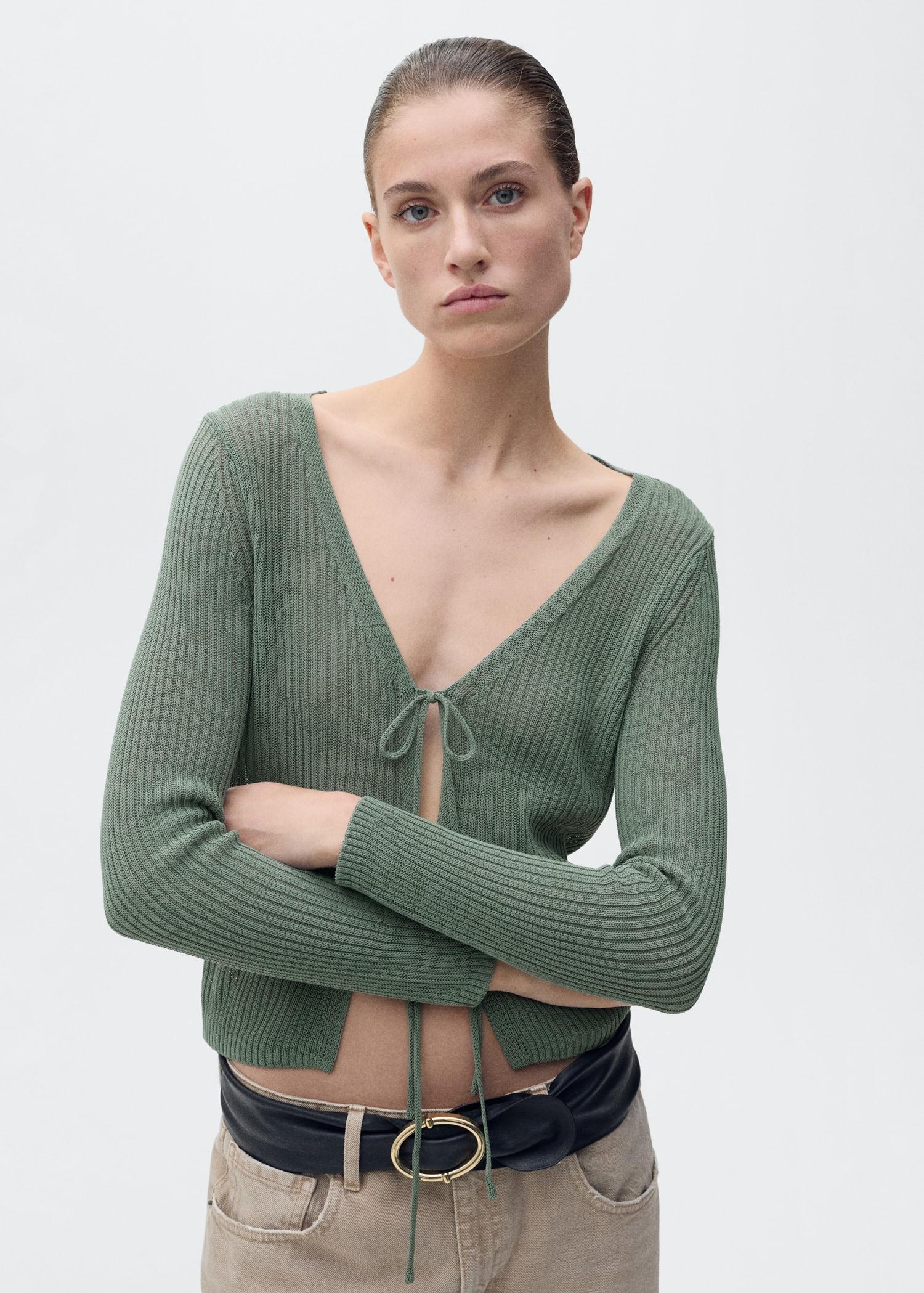 Rib-knit cardigan with bows - Women | MANGO USA