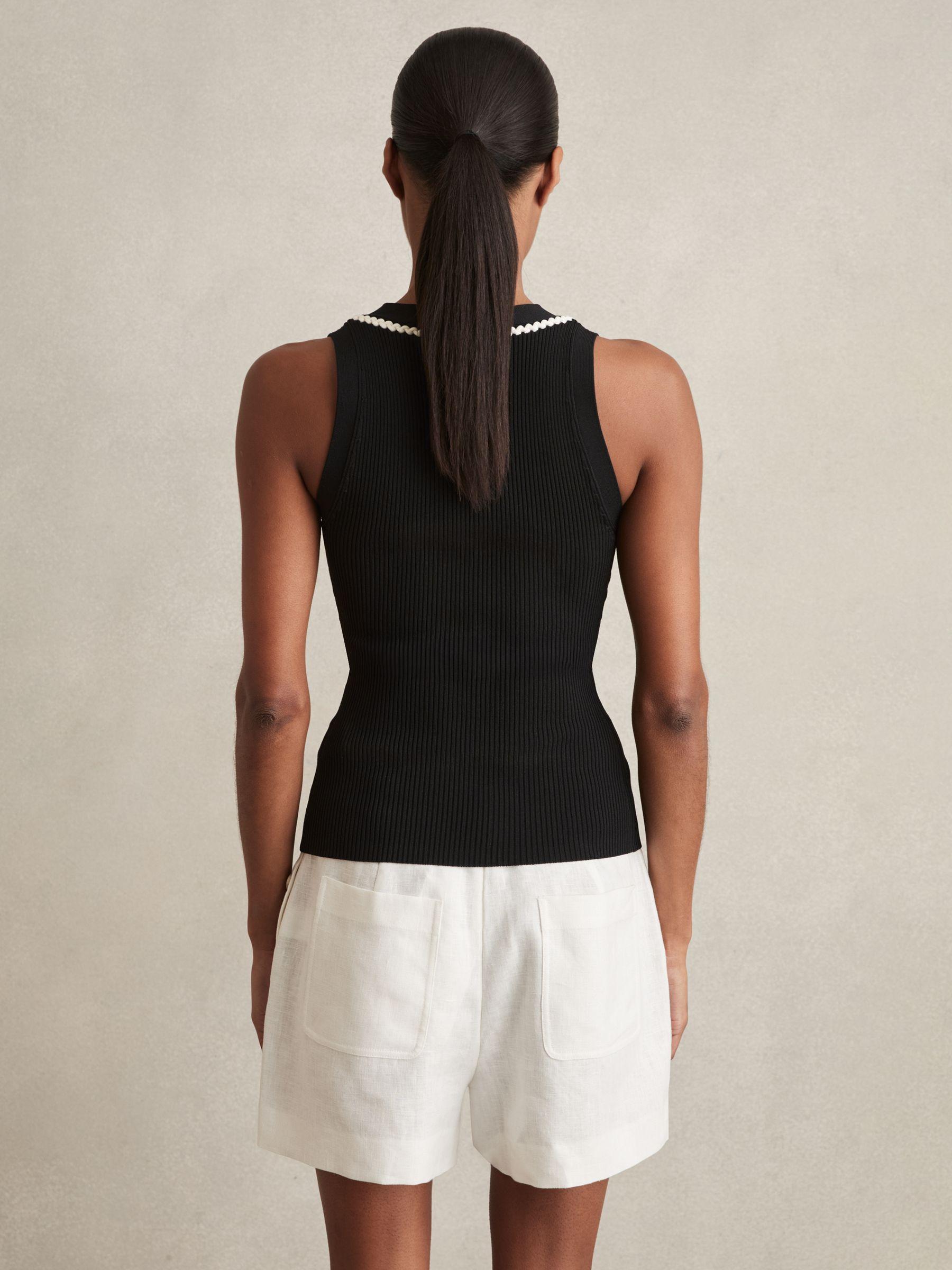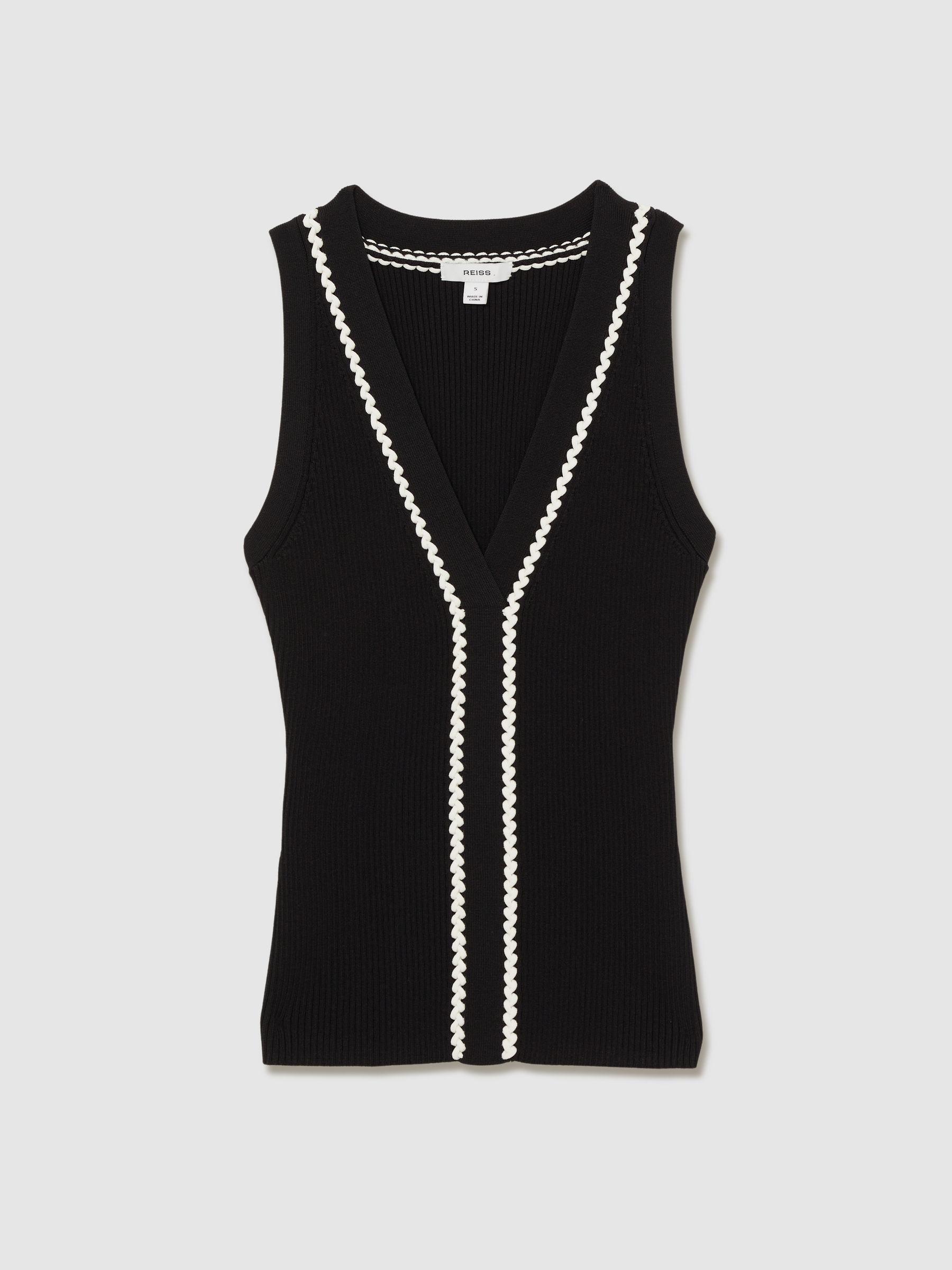 Ribbed Knit Craft Stitch Vest Top in Black/White
