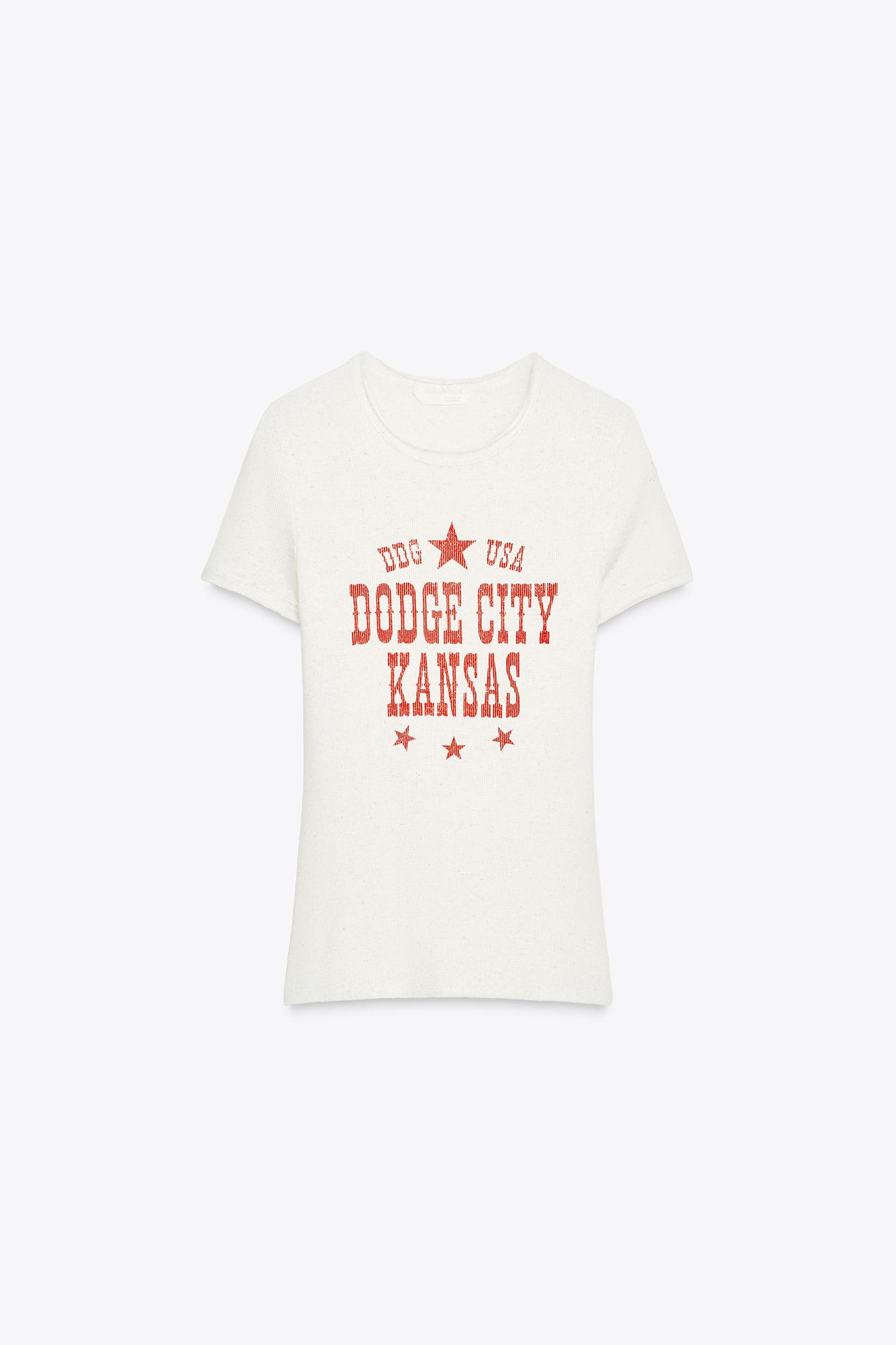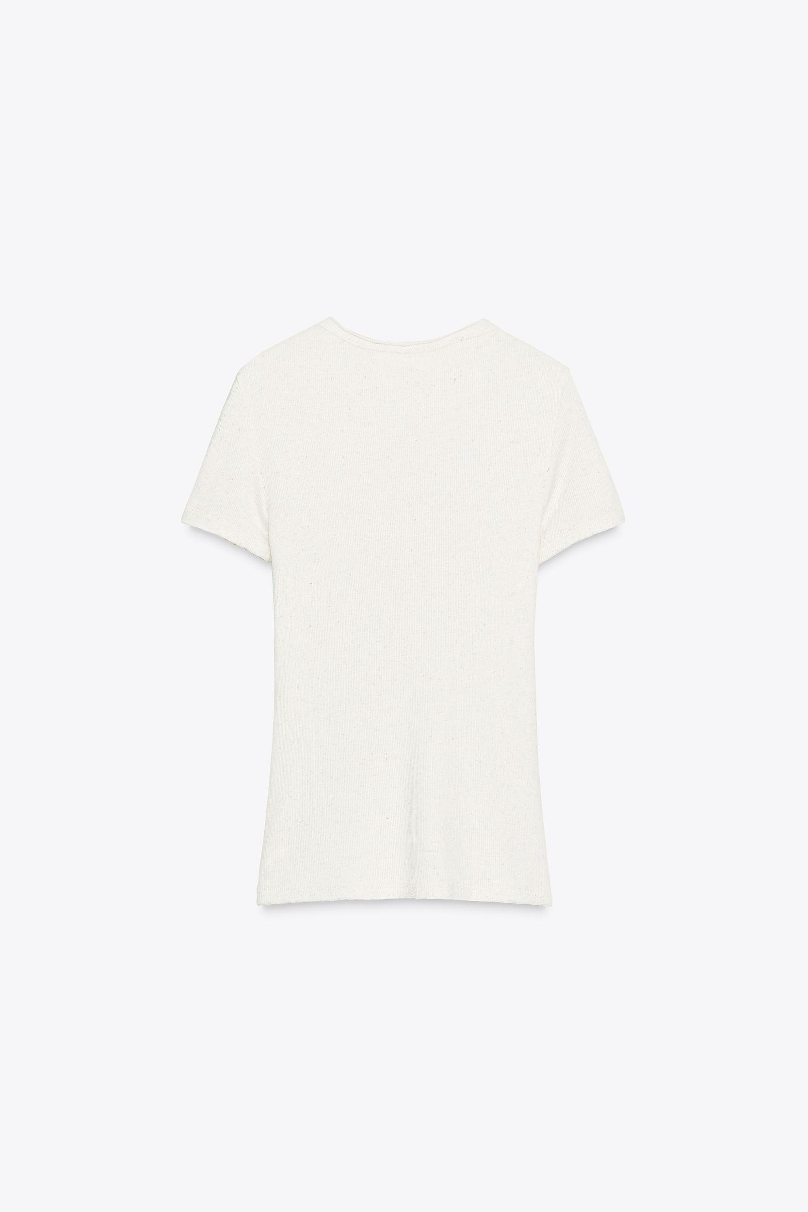 SLIM FIT - ROUND NECK - REGULAR LENGTH - SHORT SLEEVE T-shirt made in a viscose blend and 75% linen. Round neck and short sleeves. Text detail on the front.