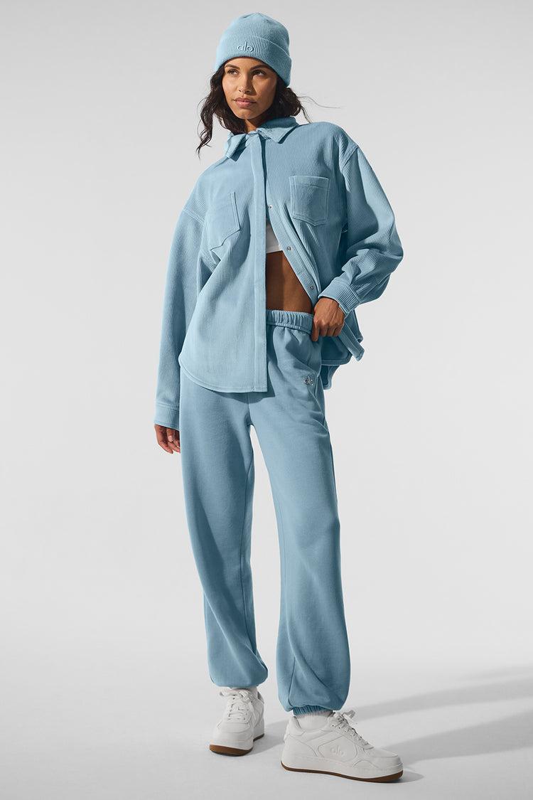Shirt jackets are such a thing. The Ribbed Velour Mountain Side Shacket is ultra-versatile in a longer-length fit, with soft ribbed velour and comfy jersey lining. Front patch pockets and darted sleeve details complete the look. Wear it open with your fave bra & leggings for a chill street look. Collared shirt-jack