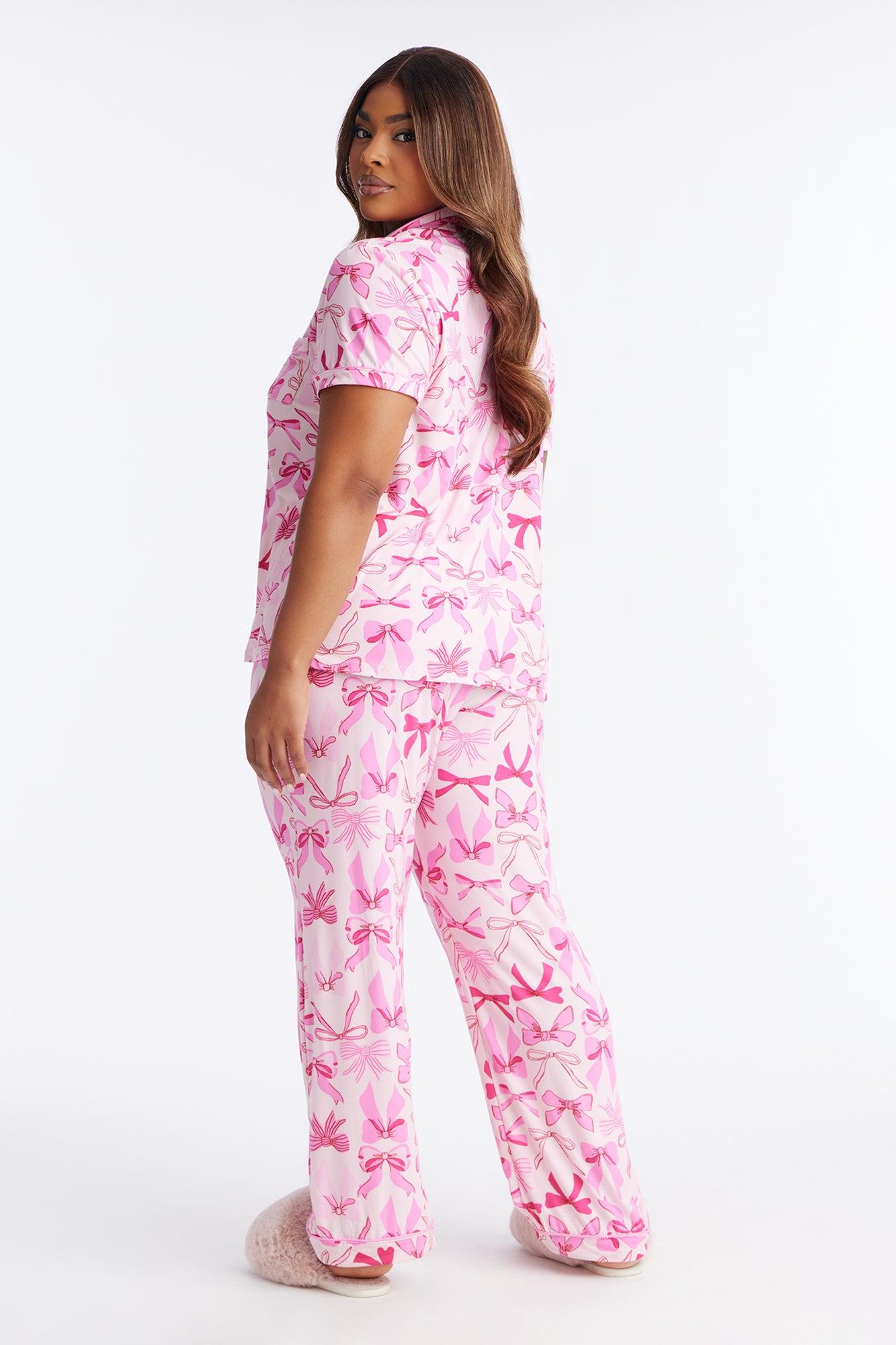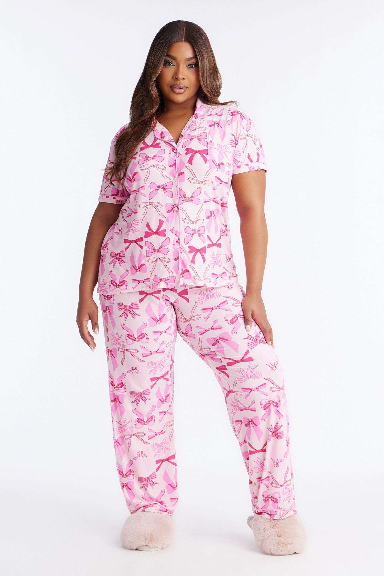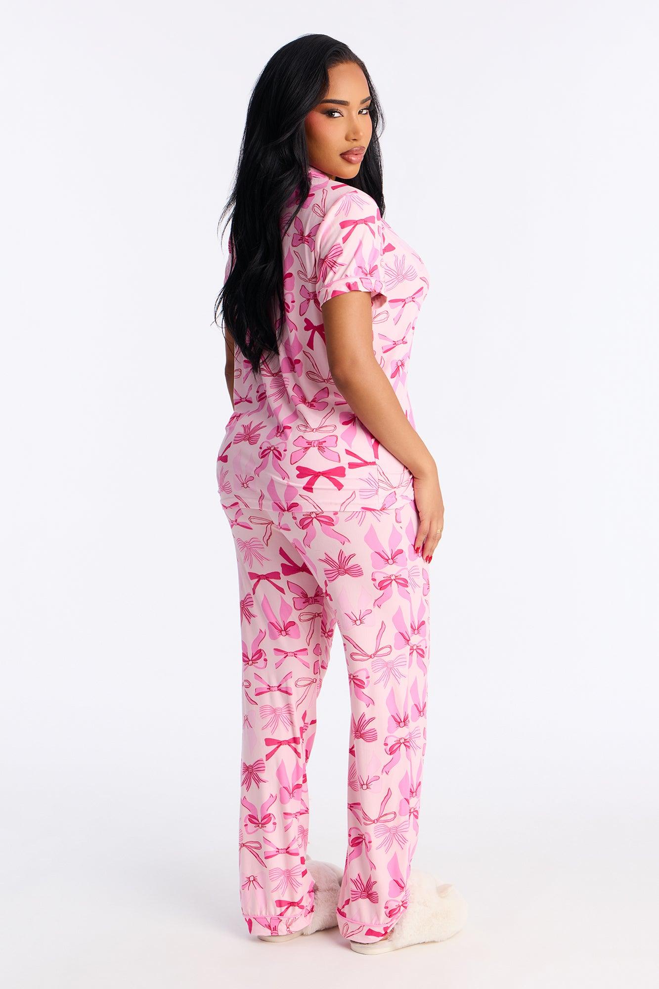 Ribbons And Bows Short Sleeve PJ Pant Set - Pink Female