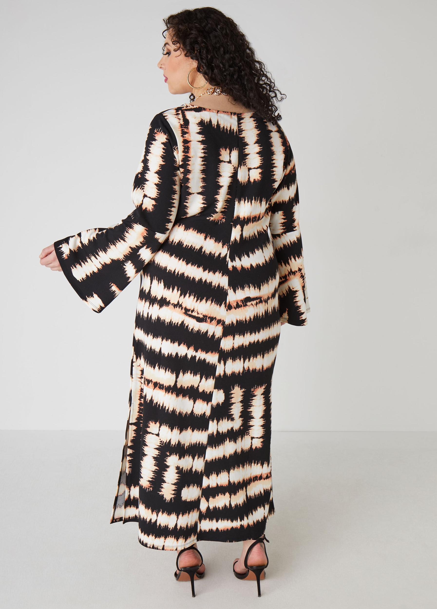 Meet your new favorite maxi dress, crafted from a luxe stretch-crepe fabric that moves with you. This eye-catching piece features bold ring embellishments, dramatic bell sleeve cuffs & a daring side slit that brings just the right amount of edge.