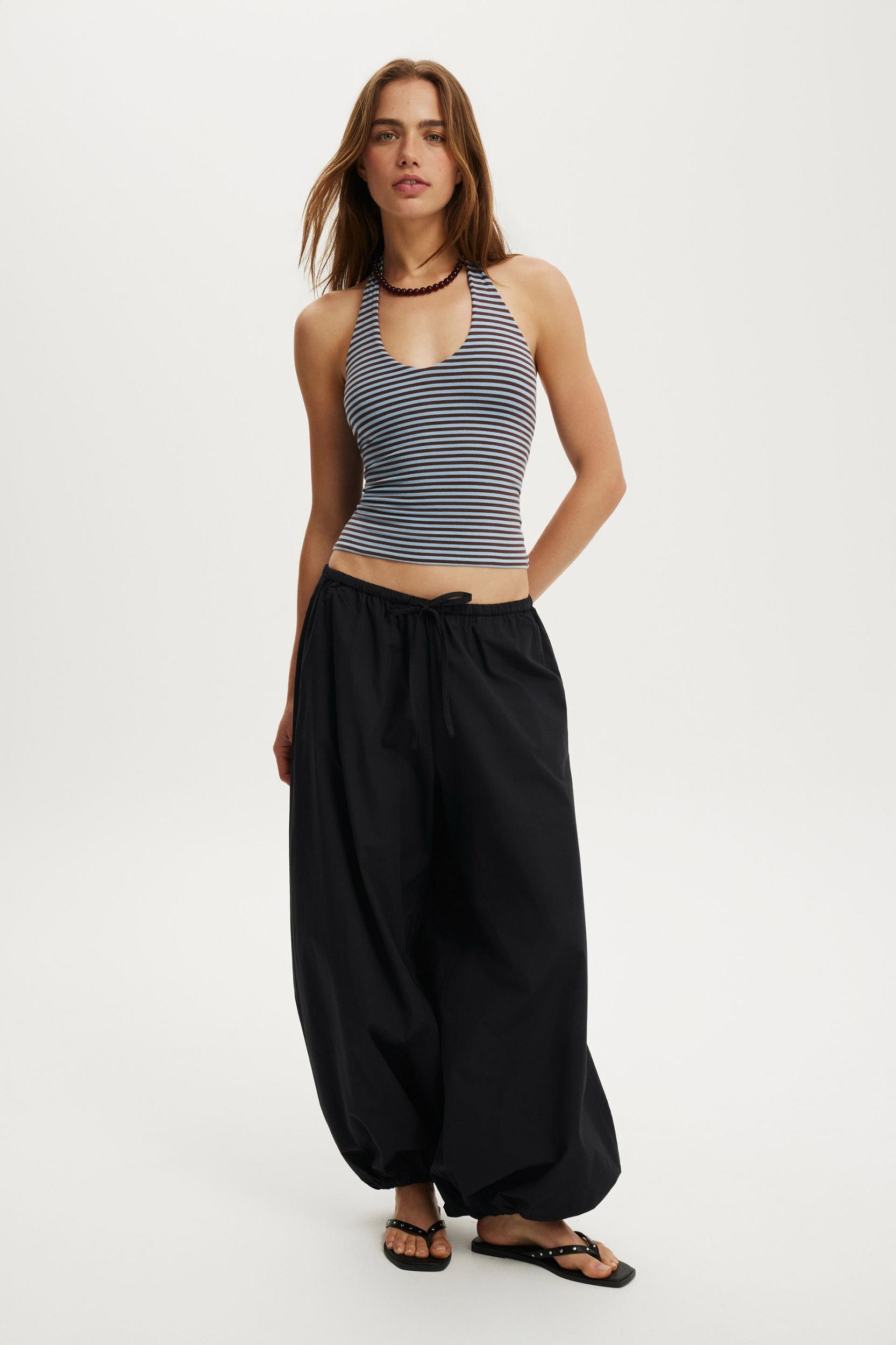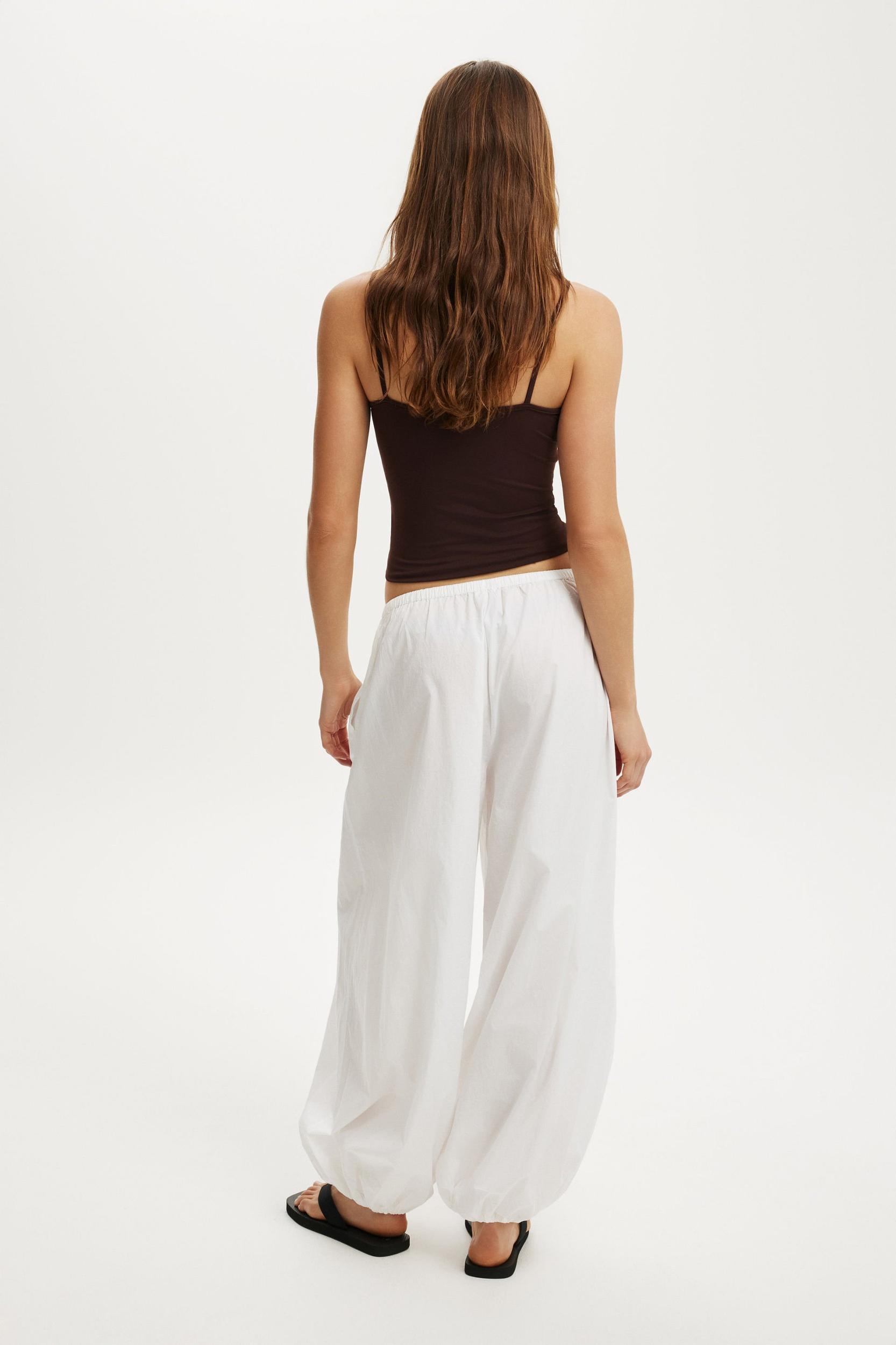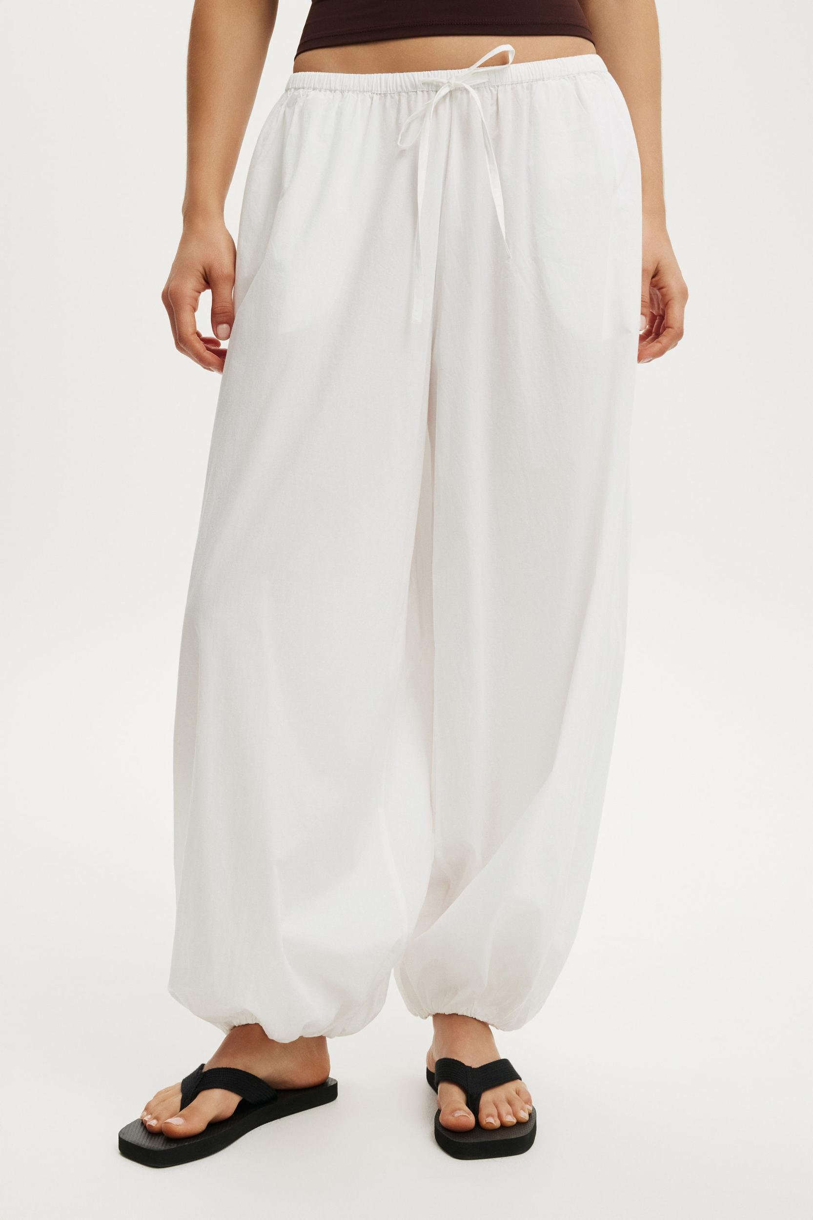 Relaxed fit ,Mid-low rise ,Balloon leg silhouette ,Elastic waistband with drawstring ,In-seam side pockets ,Unlined ,Elastic hem ,Breezy, soft cotton poplin fabric ,72cm inleg length