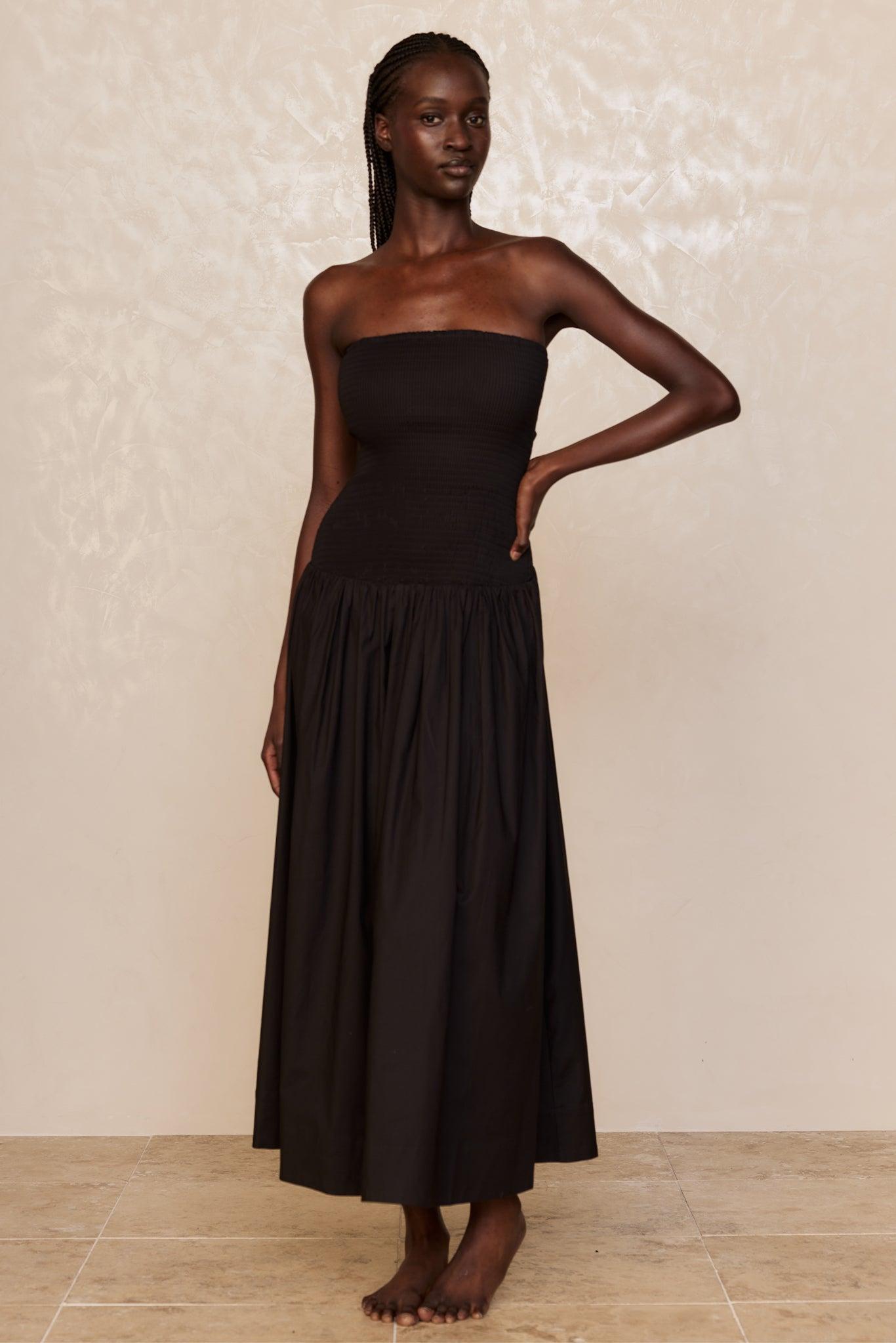Vacation chic Effortless and feminine, the Rio Dress is your go-to one-and-done cotton look for warm-weather days. Designed with a flattering strapless neckline that offers both support and style, and an easy drop-waist silhouette that flows with ease, it blends charm and comfort seamlessly.Features:Strapless dressSmocked bodiceDrop-waistFull skirtAnkle lengthCare:Hand wash cold with like colors. Do not bleach. Lay flat to dry indoors. Low iron if needed. Dry clean.