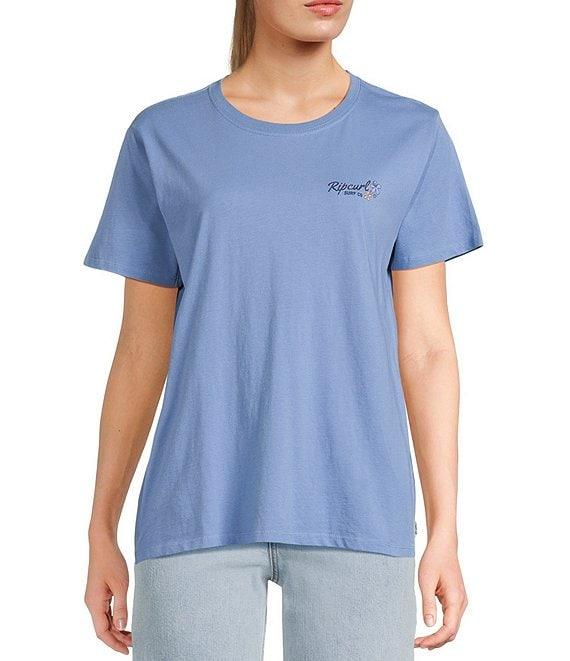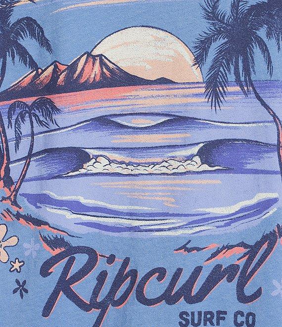 From Rip Curl, this t-shirt features: Round neckline Short sleeves Logo print on the front Sunset, island and ocean graphic plus "Rip Curl" logo and other verbiage screen printed on the back Pullover styling Standard fit Cotton Machine wash/tumble dry Imported.