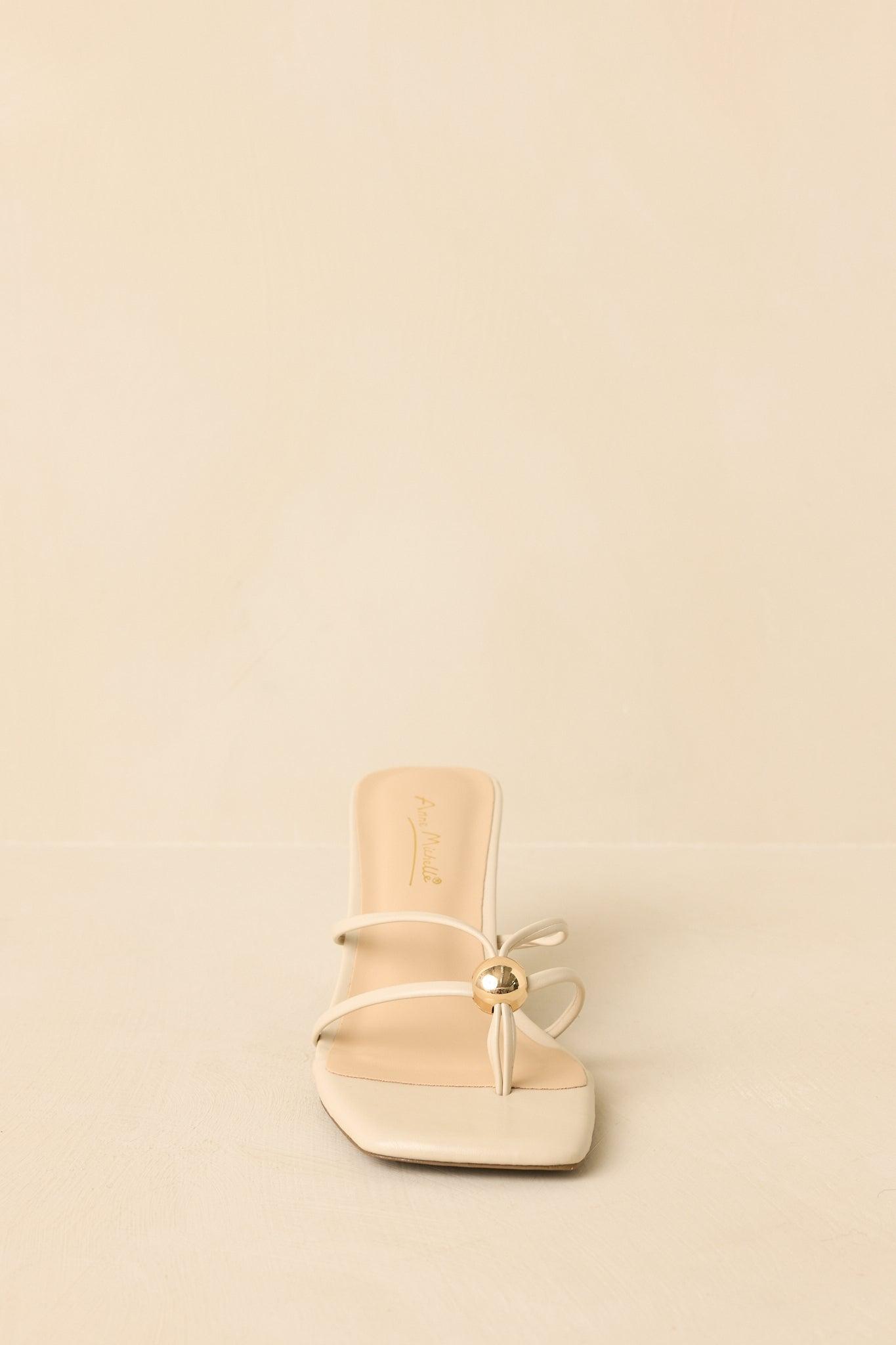 Designed to give you a gentle lift and a subtle glow, these Rise and Shine Natural Faux Leather Strappy Kitten Heel Sandals are all about easy confidence. The low heel offers just enough rise to elevate your step, while delicate straps and a soft gold bead detail catch the light with every move. Effortless, polished, and quietly radiant, they’re the kind of shoes that make getting dressed feel like a good idea from the start. This natural faux leather strappy kitten heel sandal features slim toe and instep straps, a low kitten heel for a comfortable lift, and a slip-on design. Finished with a gold bead accent, lightly cushioned footbed, and open-toe silhouette for everyday ease.Heel measures 2.75"Man made materialsNon-skid soleManufactured in ChinaDesigned in The USATrue to Size, Wide Foot Friendly