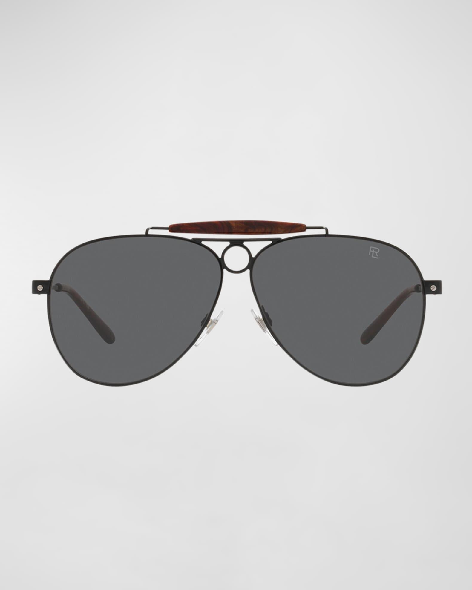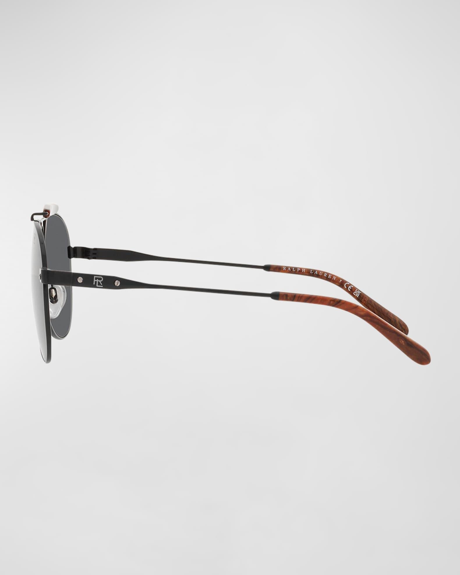 Ralph Lauren aviator sunglasses in metal and crystal Lens/bridge/temple (in mm): 61-10-145 Raised brow bar Solid lenses; logo on corner Adjustable nose pads Logo on temples Thin, tapered arms Capped earpieces 100% UVA/UVB protection Made in Italy Proposition 65 warning for California residents