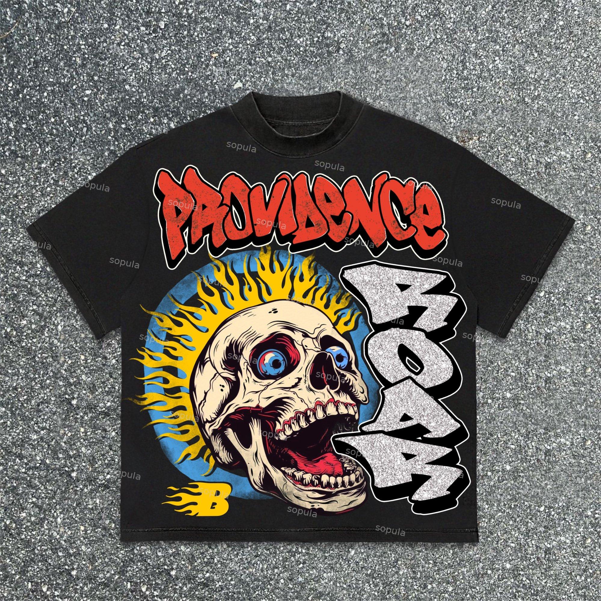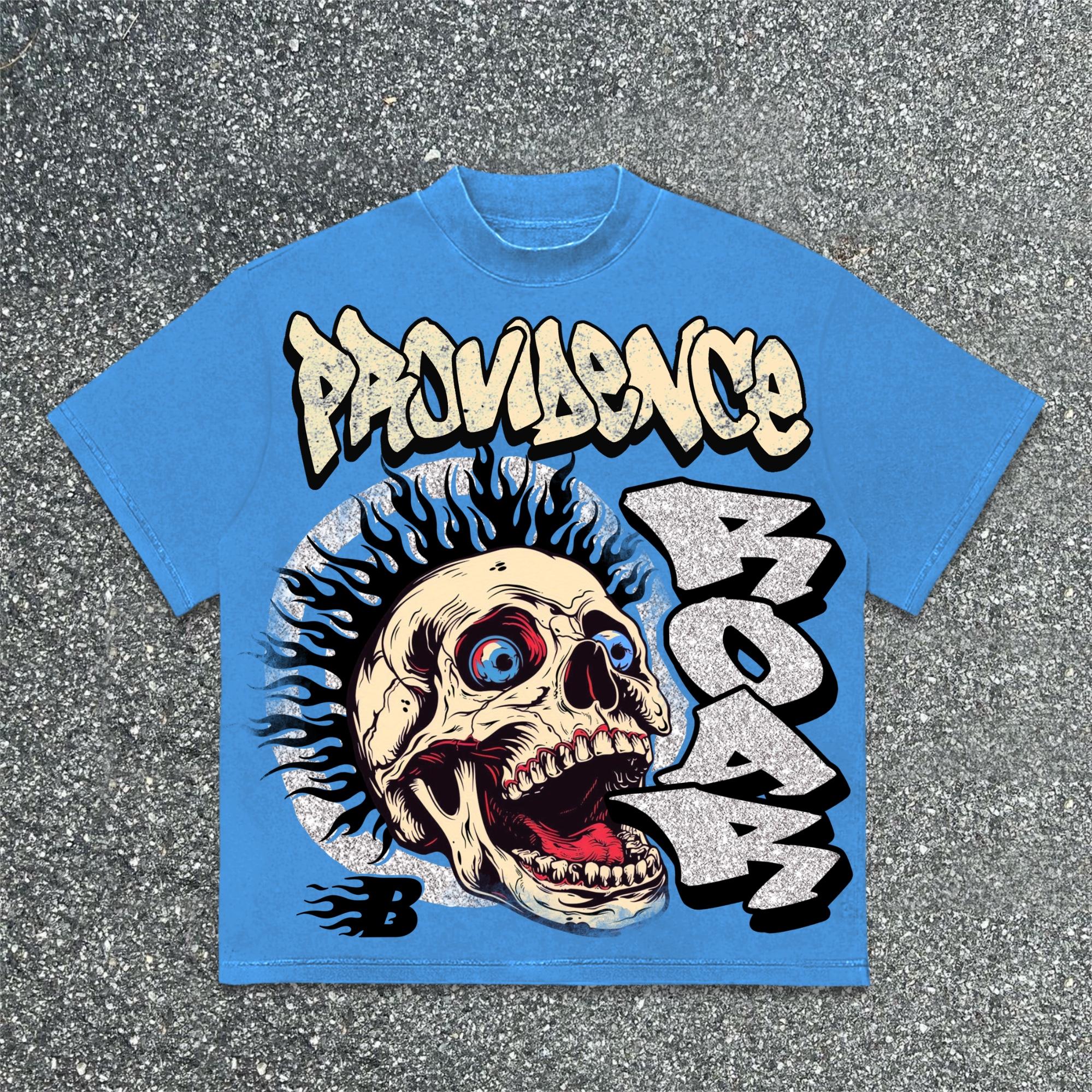 SPU: CP-166231-ZLJ Fabric Name: 100% Cotton Pattern: Roaring Skull Graphic Process: Printed Style: Vintage Length: Regular Collar: Round Neck Popular Elements: Letter Sleeve Type: Short Sleeve Occasion: Street, Daily Theme: Summer