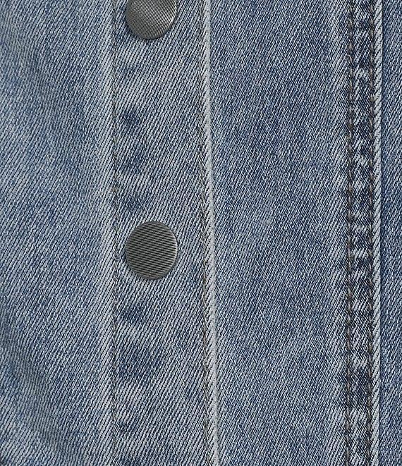 From Rock & Roll Denim, this dress feature: Stretch denim fabrication Pencil silhouette Point collar Sleeveless Belt loops Self removable belt Approx. 33.75" length Front button closure Cotton/spandex Machine wash cold/line dry Imported.