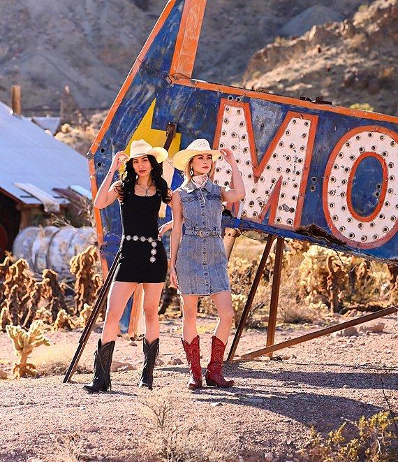 Rock & Roll Denim Point Collar Sleeveless Belted Pencil Dress