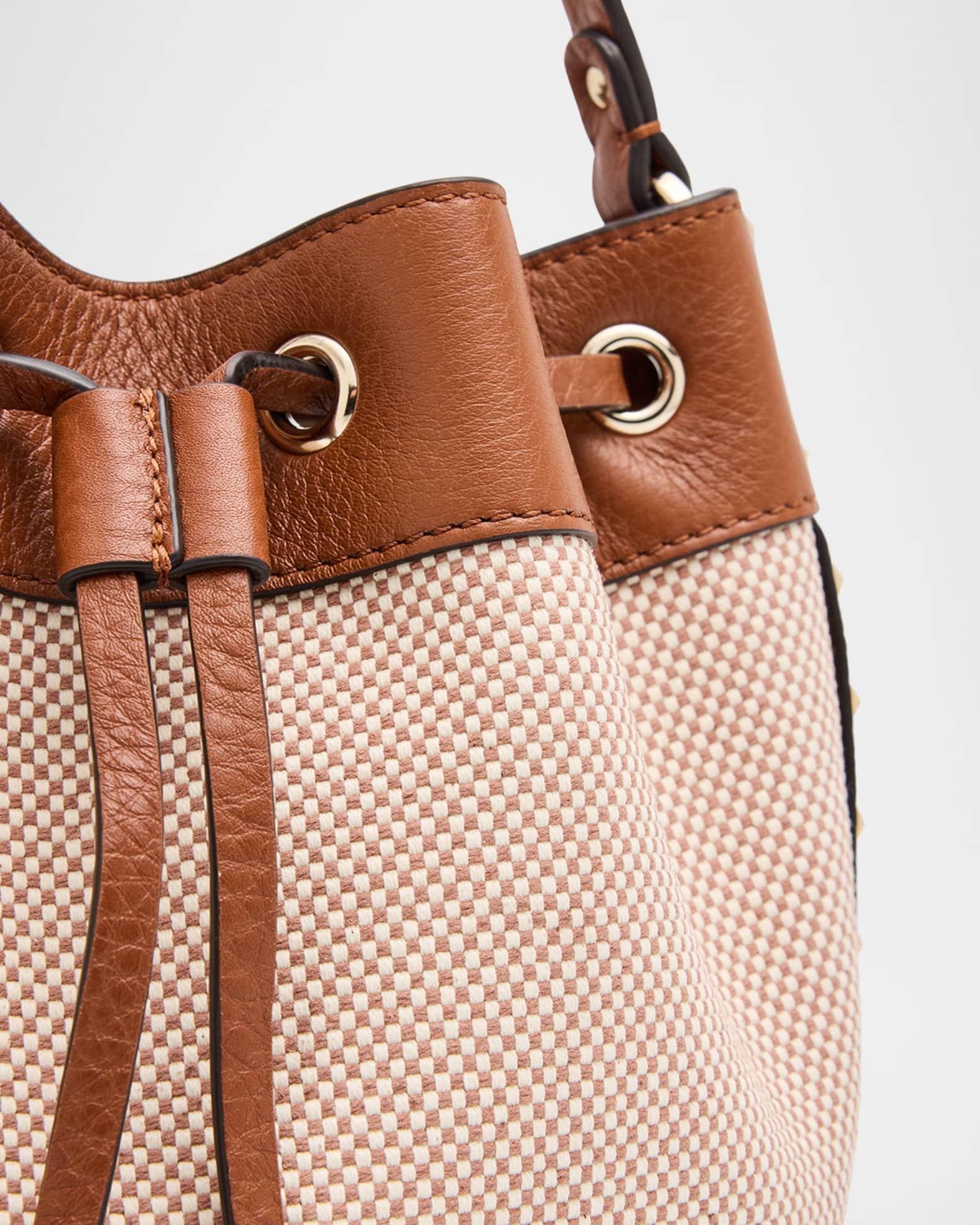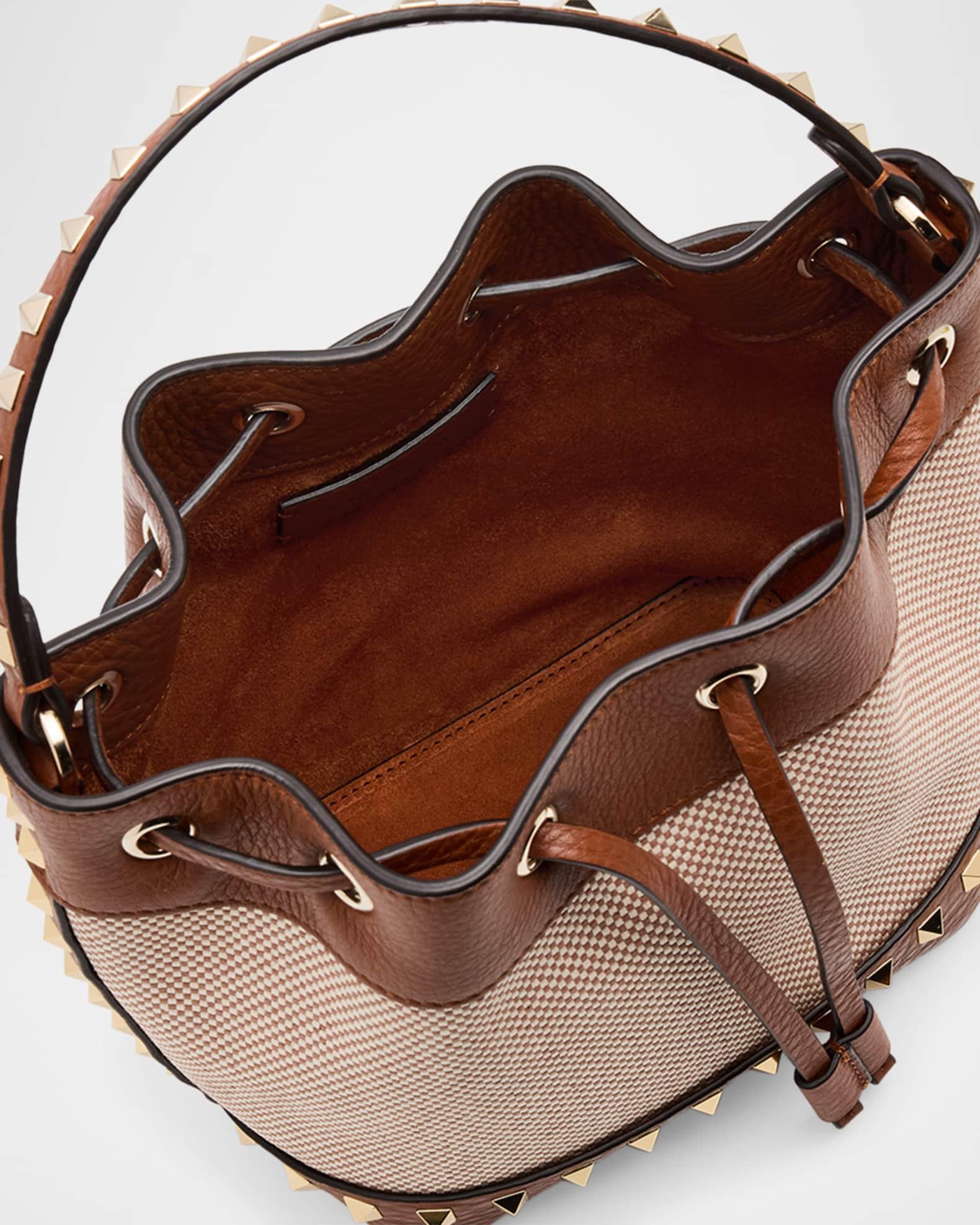 Rockstud Drawstring Canvas & Leather Bucket Bag
