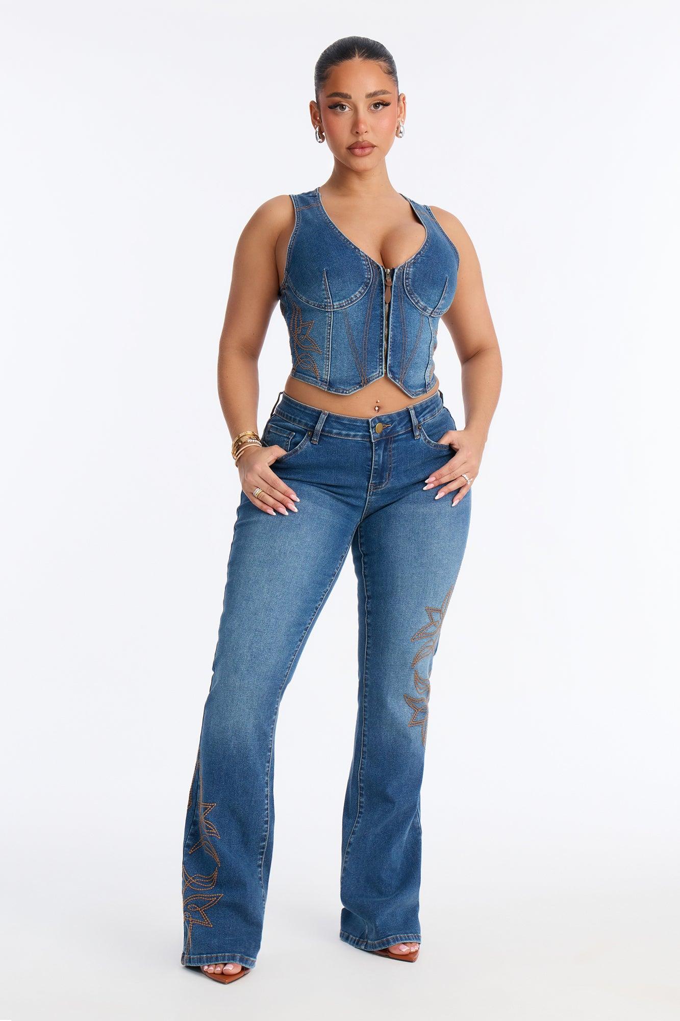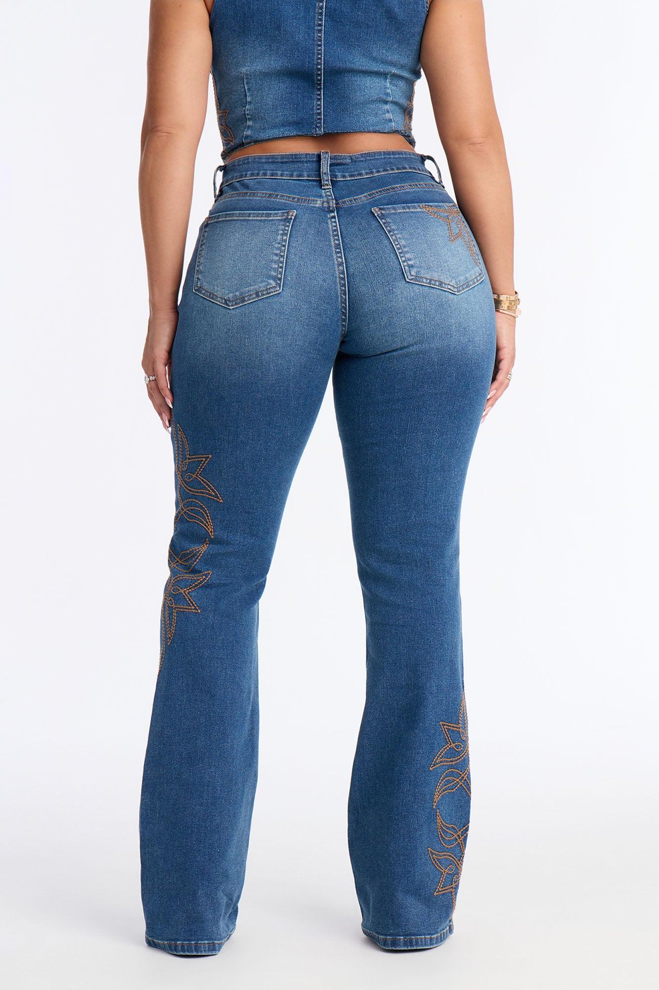 Available In Dark Wash. Pair With Rodeo Royale Embroidered Denim Vest Bootcut Jean 5 Pocket Embroidery 8" Low Rise 34" Inseam Medium Stretch Self: 77% Cotton 20% Polyester 1% Spandex 2% Other Fiber Imported