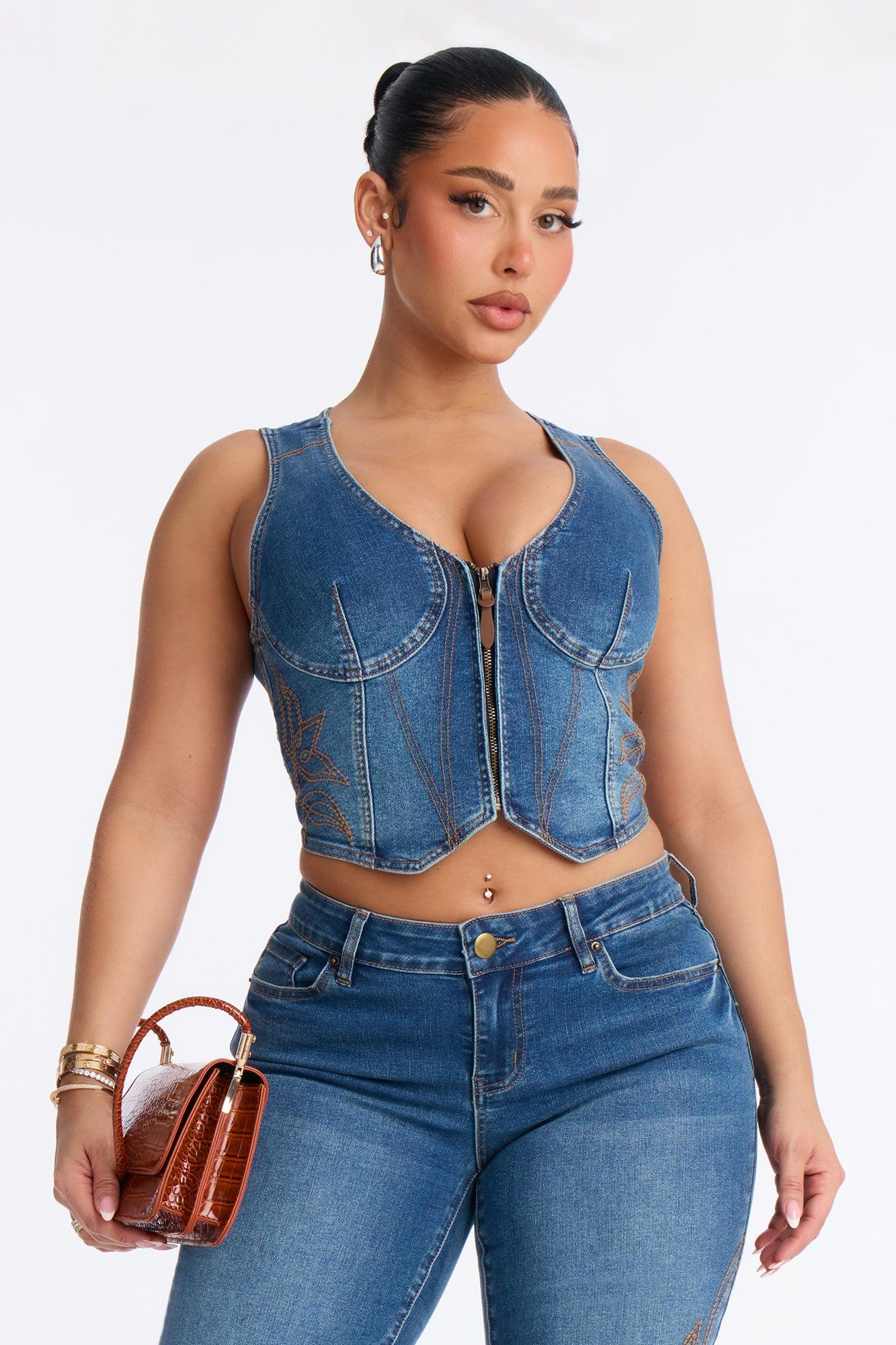 Available In Dark Wash. Pair With Rodeo Royale Embroidered Bootcut Jeans Sleveeless Denim Vest Front Zipper Closure Embroidery Medium Stretch Self: 77% Cotton 20% Polyester 1% Spandex 2% Other Fiber Imported