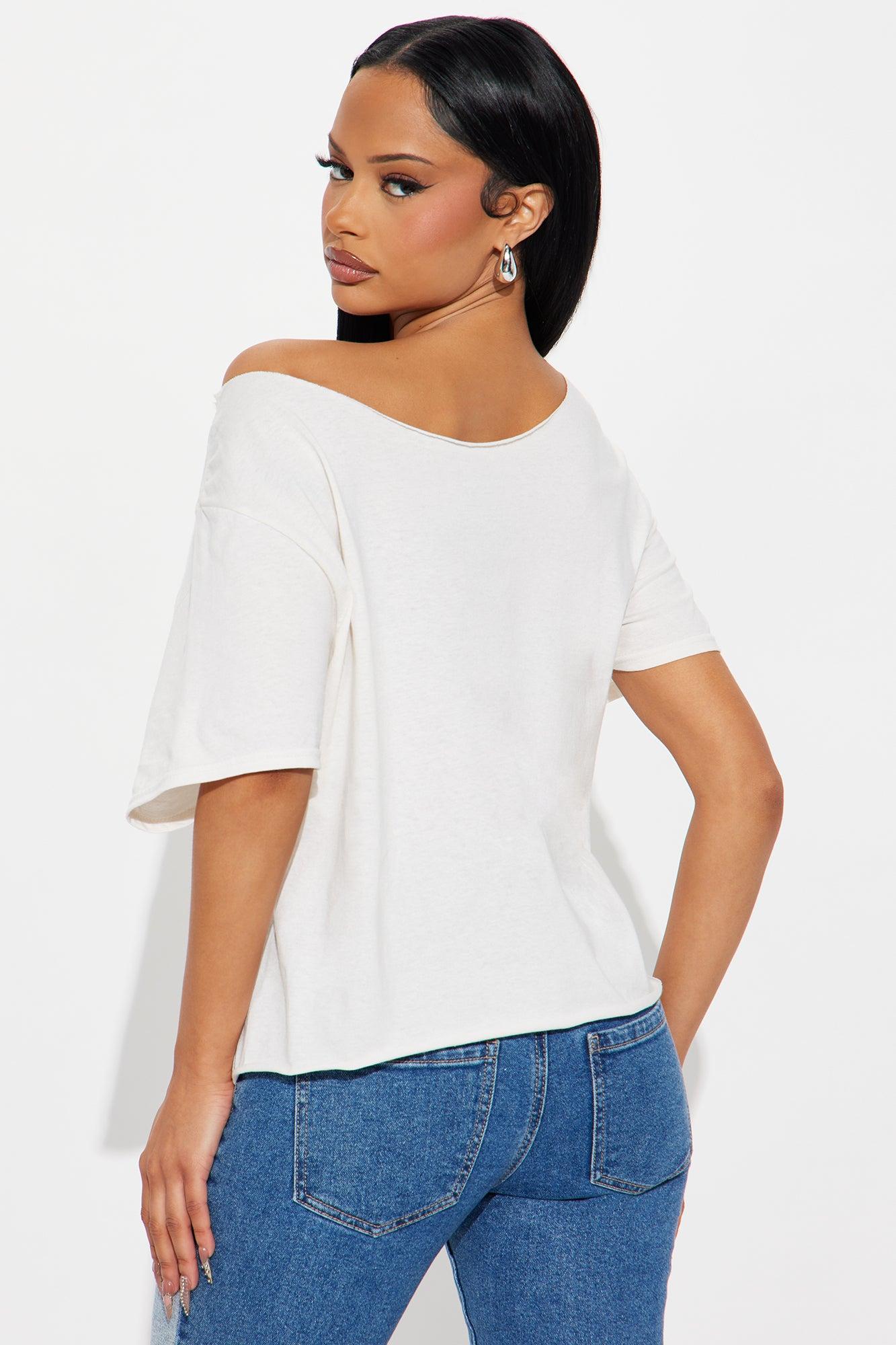 Available In Off White. Off Shoulder Short Sleeve Stretch Front Screen Disclaimer: Due To The Printing Process A Difference In Saturation May Occur. Each Garment Is Unique. Self: 60% Cotton 40% Polyester Imported