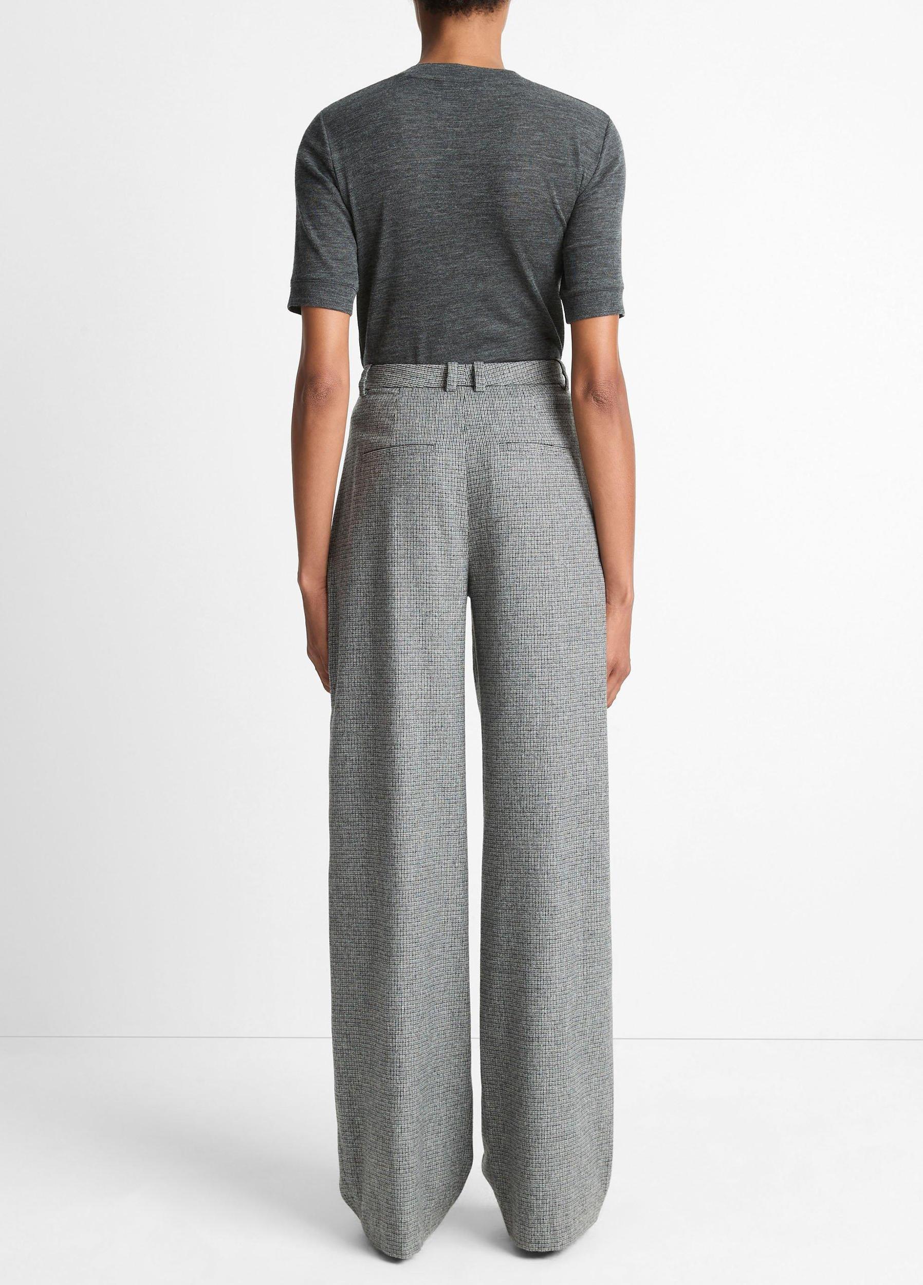 Traditional fabrics and patterns underpin our Fall Collection. This wide-leg trouser is crafted from a soft Italian wool blend in a timeless, black-and-white small-scale check. It's finished with all the classic tailored details, like a pleated front and creased legs.
