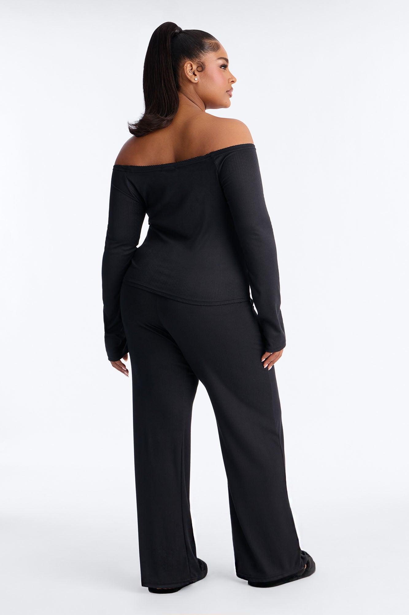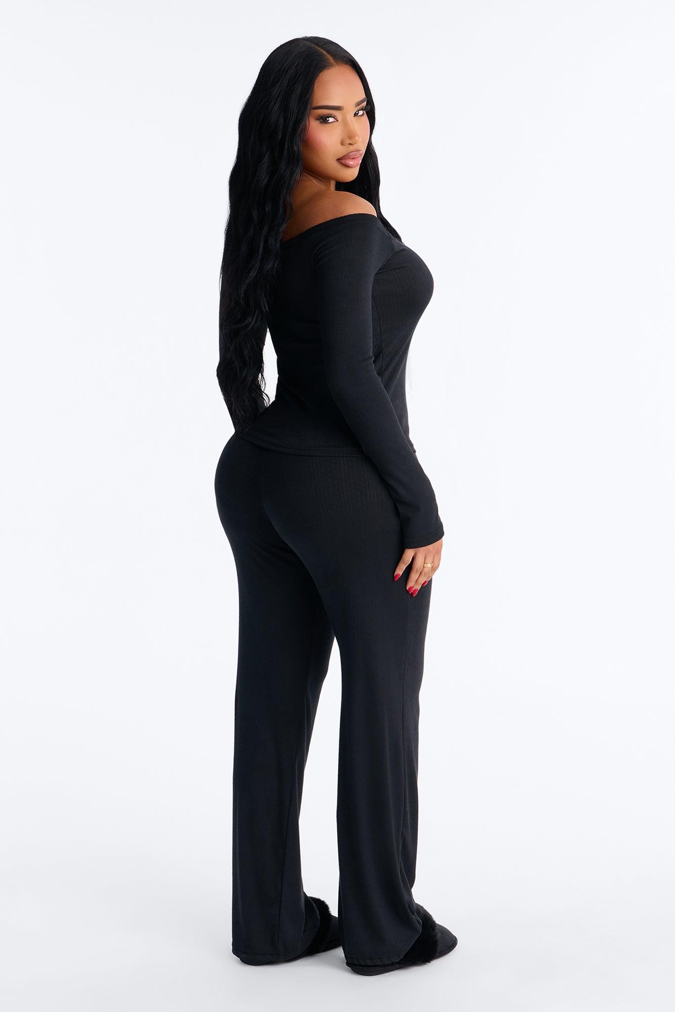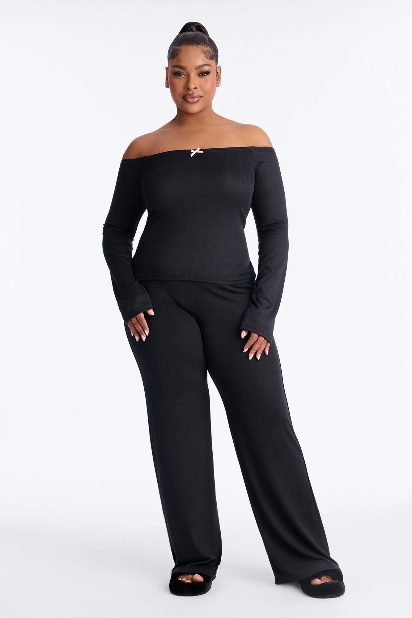 Romance Dreams Off Shoulder Pointelle PJ Pant Set - Black Female