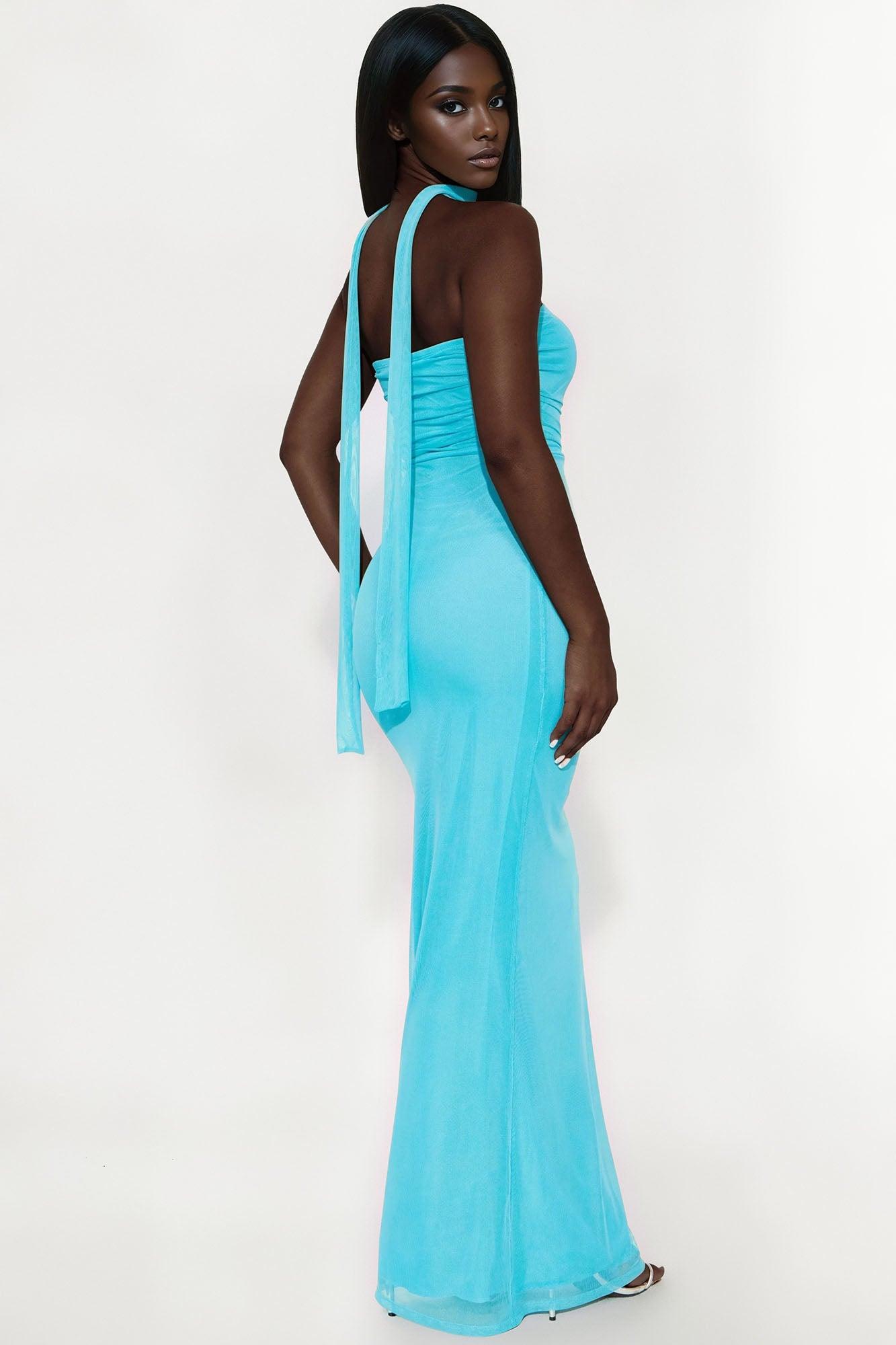 Available In Black And Turquoise. Mesh Maxi Tube Dress Strapless Straight Neckline Scarf 3D Applique Flower Ruched Top Lined Stretch Self: 95% Polyester 5% Spandex Lining: 100% Polyester Imported California Proposition 65WARNING: Cancer and Reproductive Harm - www.P65Warnings.ca.gov.