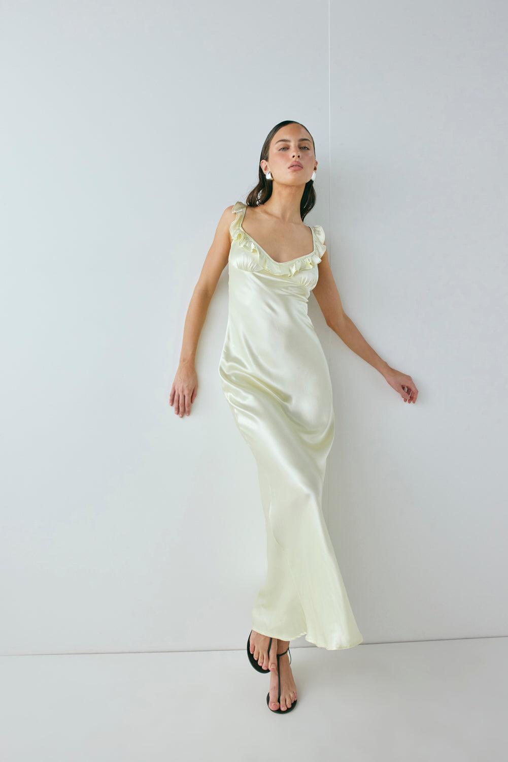 Rosalia Satin Bias Cut Maxi Dress Butter