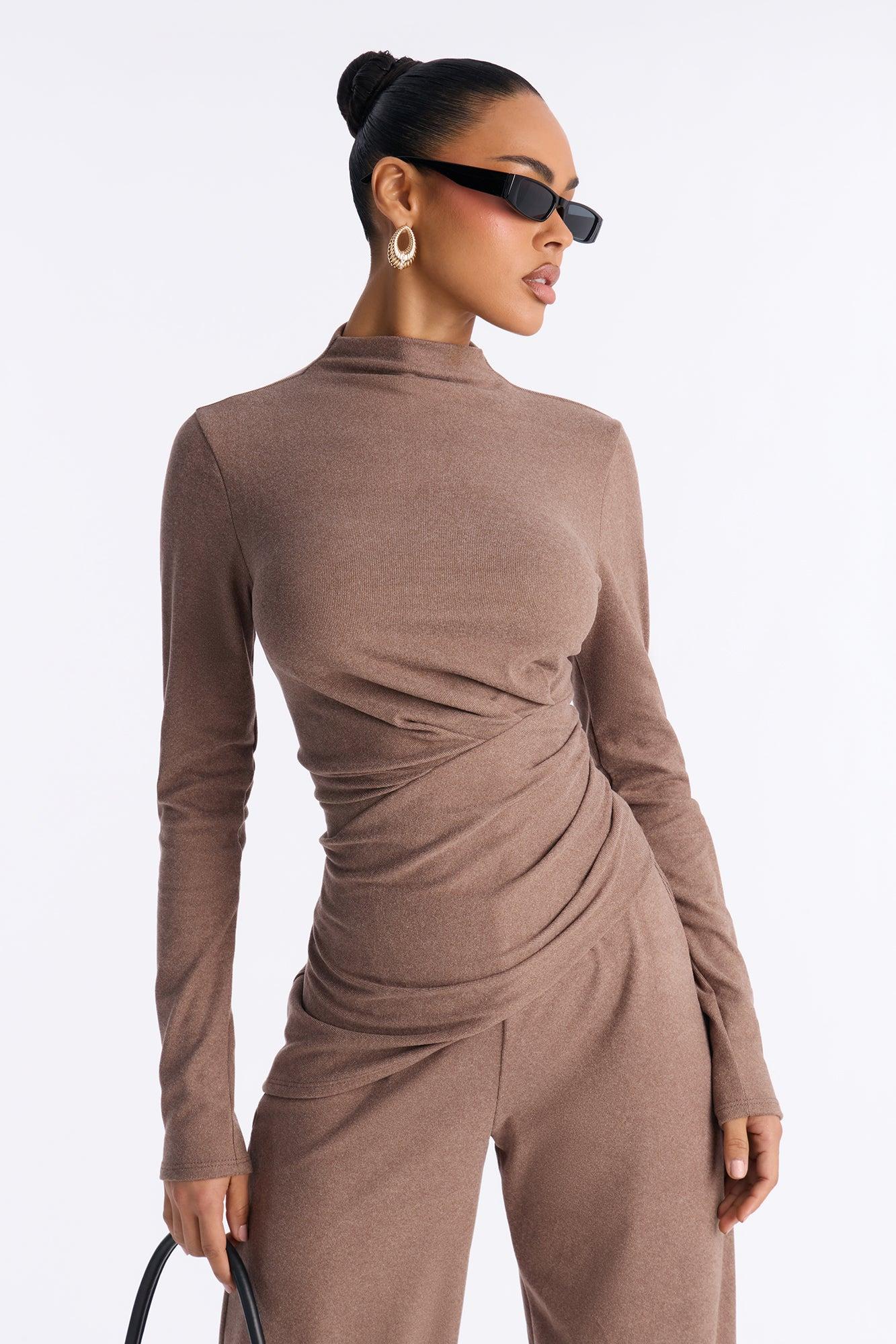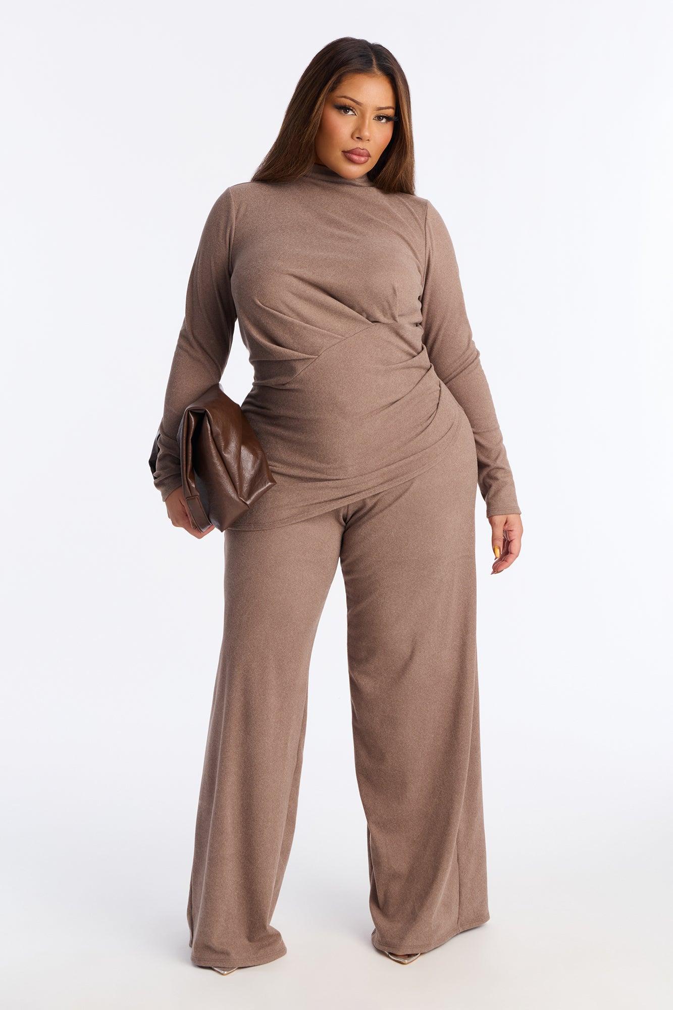 Rosie Brushed Knit High Neck Pant Set - Brown Female