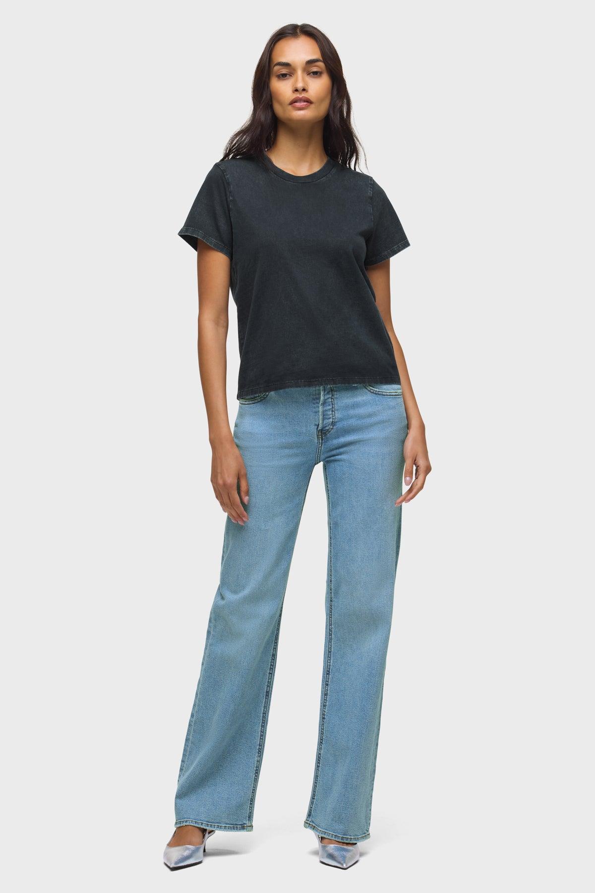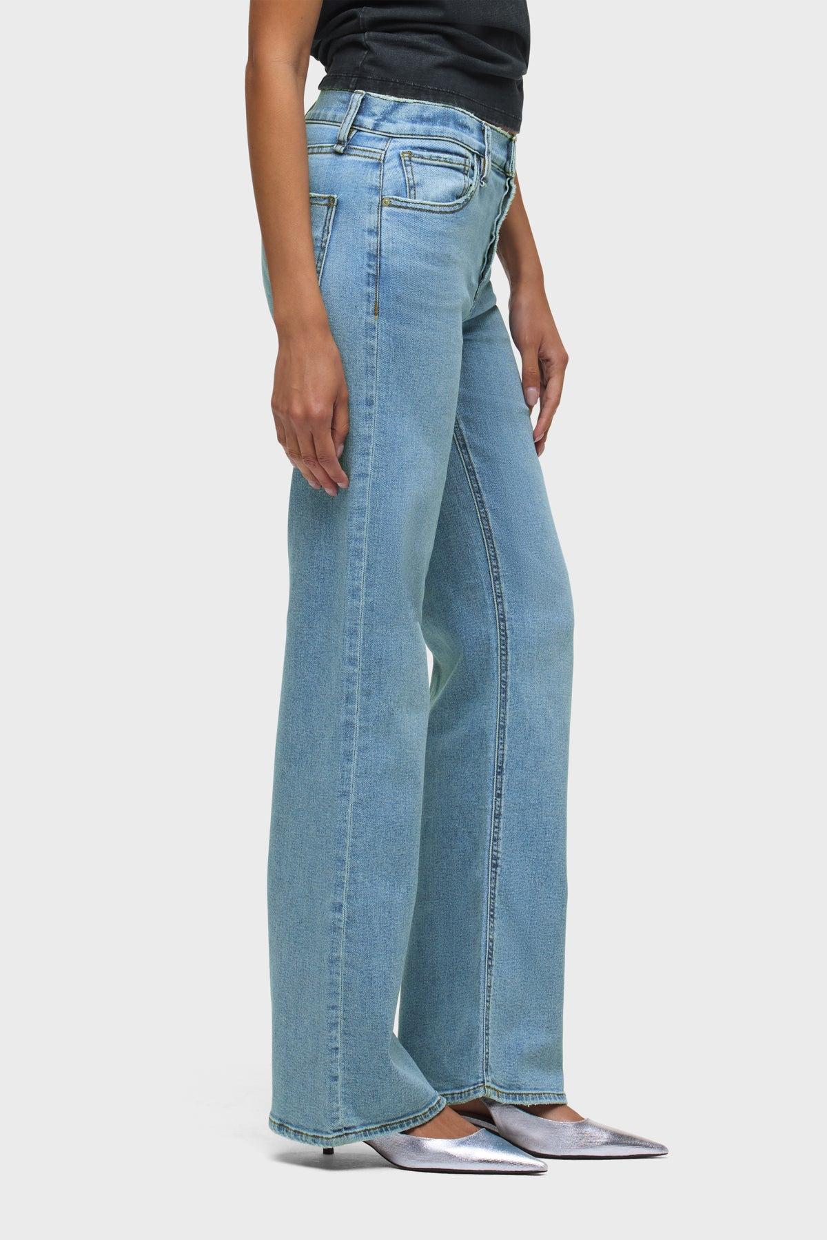 Description Our Rosie High-Rise Wide Leg Jean in Oak has a classic fit with a 32" inseam, an elevated waistline and a roomy leg. This pair is crafted from premium comfort stretch denim in a light indigo wash and finished with a covered button fly. Product Details Front Rise: 10.25", Leg Opening: 20", Inseam: 32" Fit & Care Content: 93% Cotton, 6% Elastomultiester, 1% Elastane Machine wash cold gentle cycle Only non-chlorine bleach when needed Tumble dry low Medium iron if needed