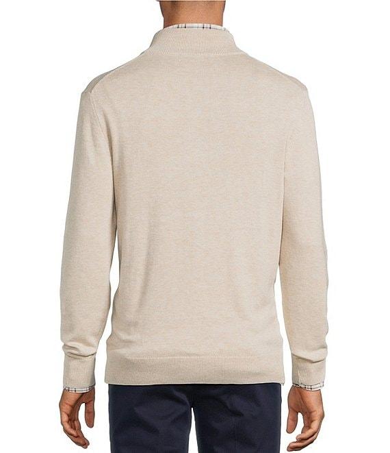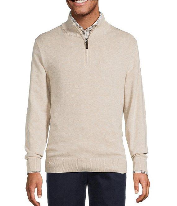 From Roundtree & Yorke Big & Tall, this pullover features: Mock neckline Long sleeves Quarter zip closure with faux suede zipper pull Pullover construction Cotton/acrylic/rayon/nylon Machine wash cold/tumble dry Imported.