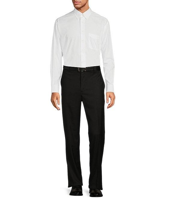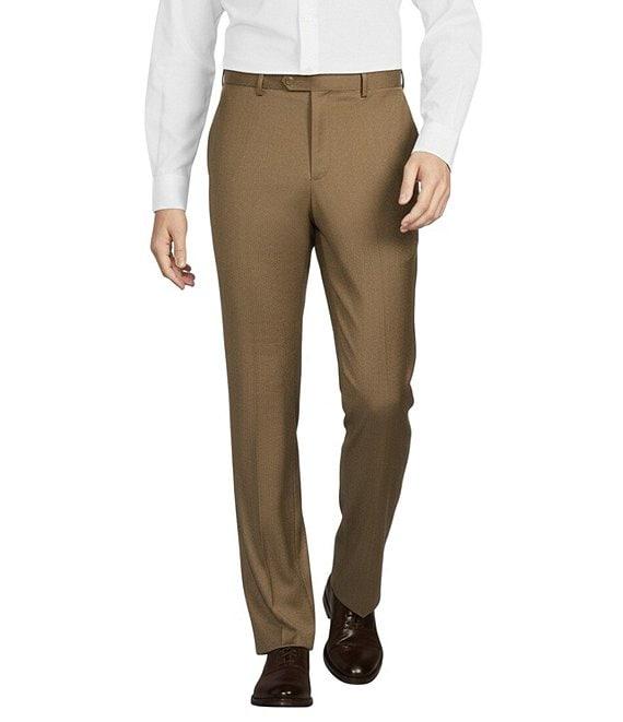 From Roundtree & Yorke, these pants feature: Luxury Gabardine Flat front Wrinkle resistant, with crease retention Zip fly with extended tab closure Ultimate comfort waist Classic fit is relaxed through the hip, thigh, and leg polyester, rayon and spandex Machine wash/tumble dry Imported.
