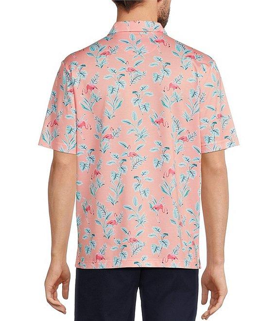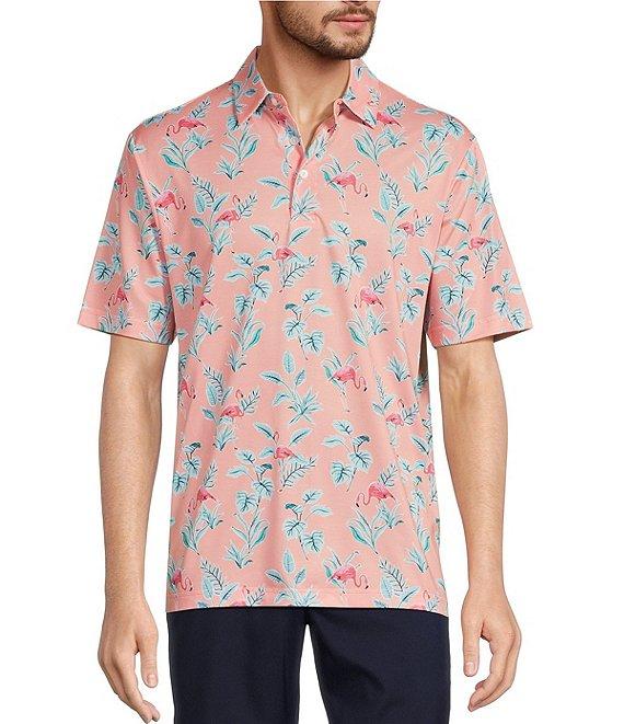 Roundtree & Yorke Performance Short Sleeve Flamingo Print Polo Shirt