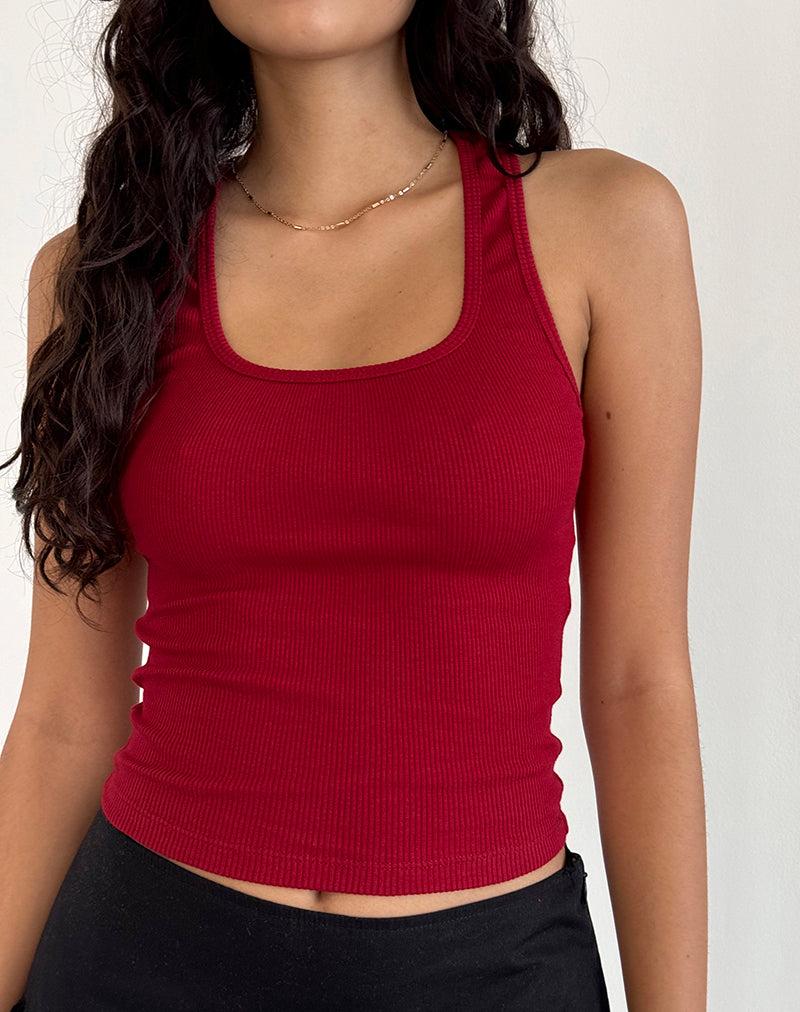 Roxe Ribbed Vest Top in Adrenaline Red Female