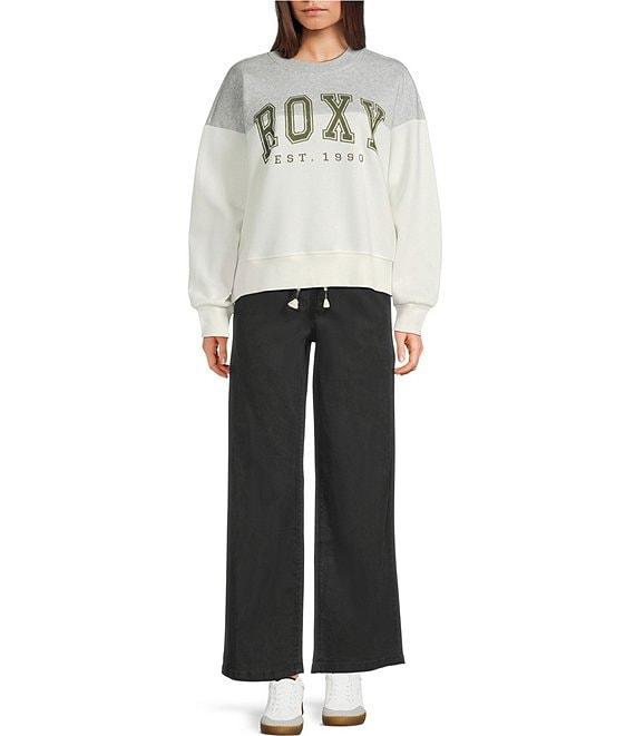 From Roxy, this sweatshirt features: Color block design Round neckline Long sleeves "Roxy" logo graphic on the chest Pullover styling Laid-back styling Cotton/polyester Machine wash/tumble dry Imported.