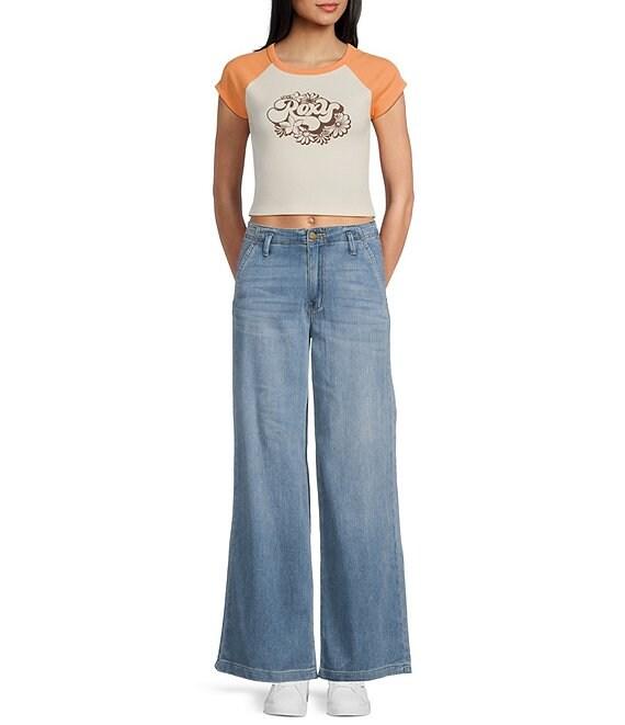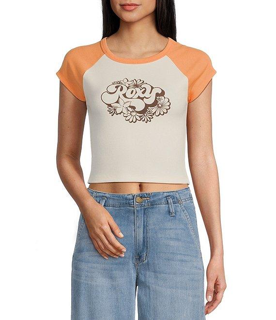 Roxy Groove Raglan Short Sleeve Color Block Cropped Graphic T-Shirt