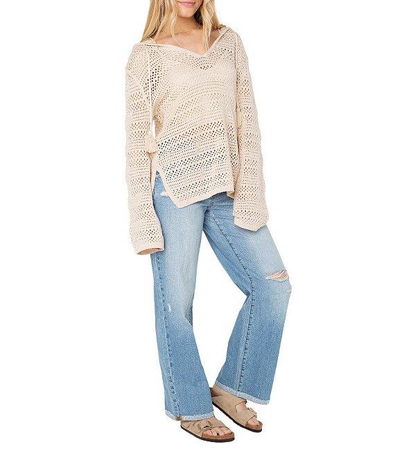 Roxy Hippie Love Long Sleeve Detailed Knit Hoodie Top