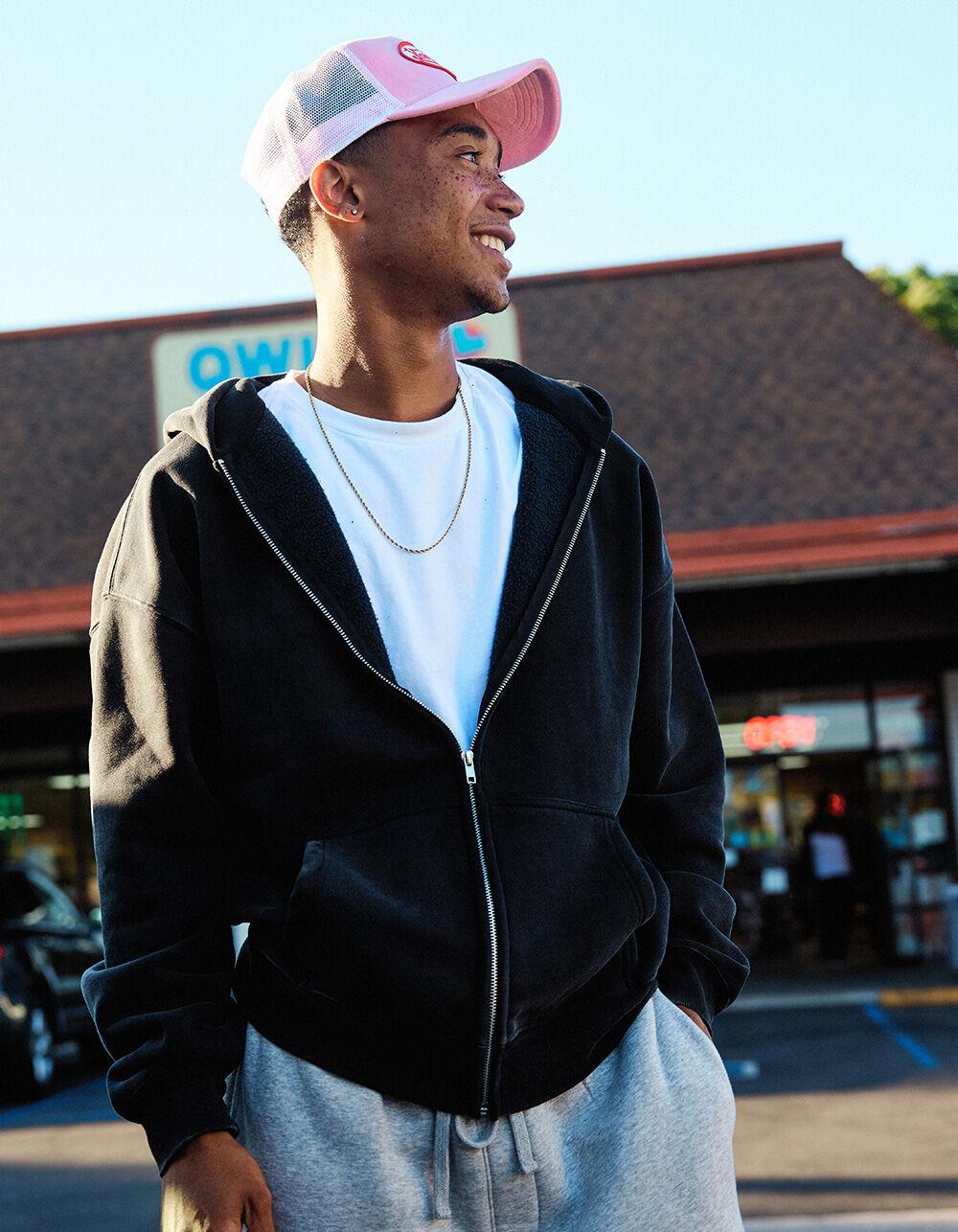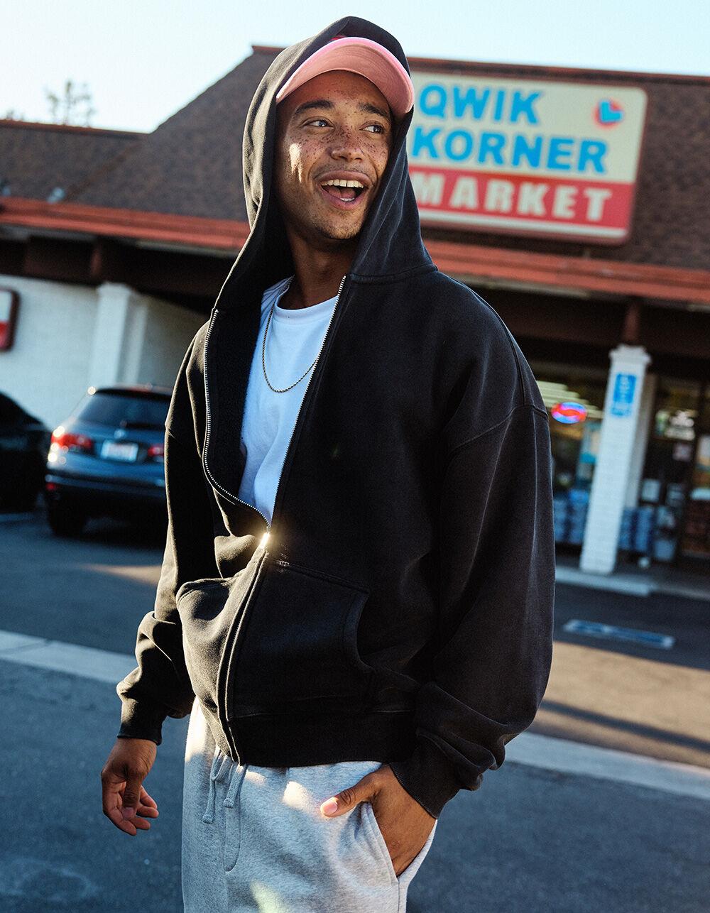 RSQ Mens Oversized Zip-Up Hoodie - BLACK