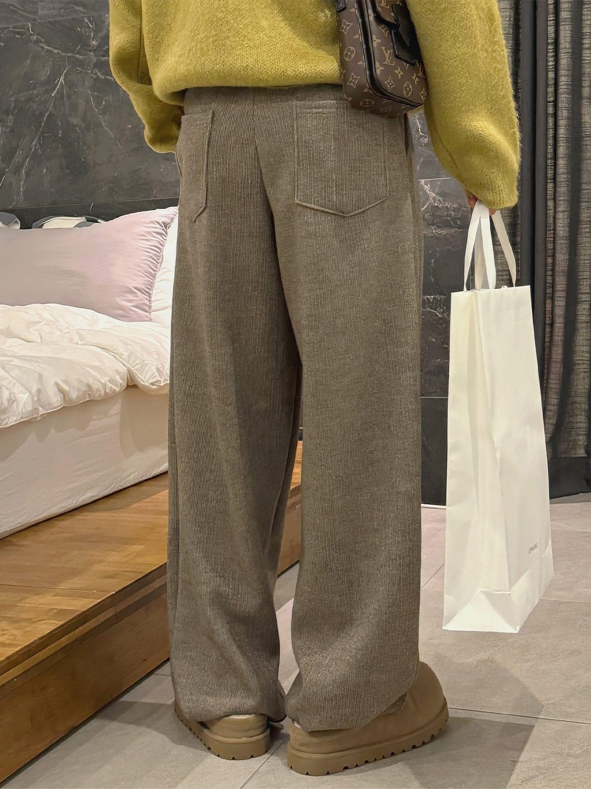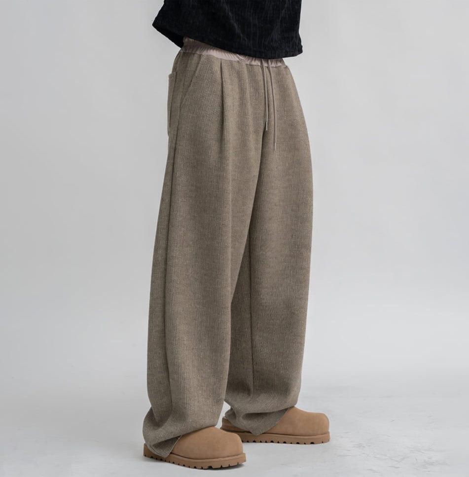 - KHAKI- Pleated (folded)- Wide straight fit- Drawstring