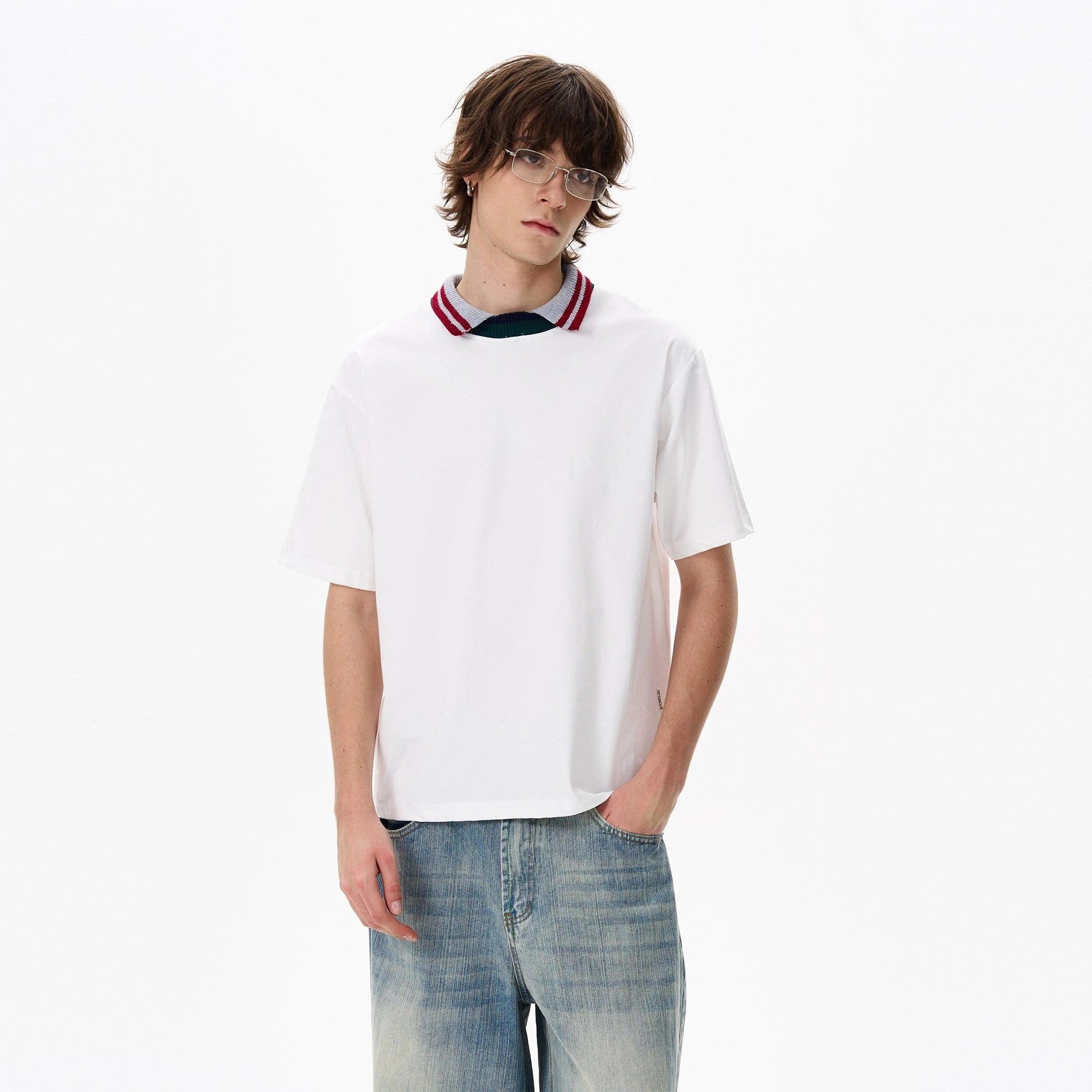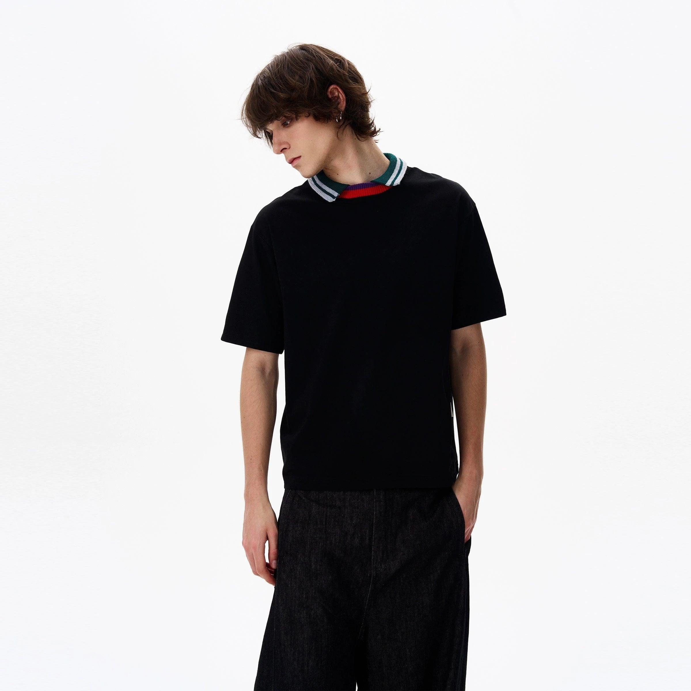 Model is 5ft 10''(178cm) tall, 145 lbs(66kg) weight and wearing a size L168cm 59kg wearing a size M - TWO-PIECE- Collar (knitted)- Short-sleeve- 2 colors