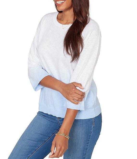 From Ruby Rd., this top features: Fine-gauge knit fabrication Crew neckline 3/4 sleeves Ombre wash Lightweight and refined-perfect for easy layering with a hint of color play Ribbed neckline, cuffs and hem Pullover construction Cotton Hand wash cold/lay flat to dry Imported. A gentle ombre wash brings soft movement to this cotton slub sweater, finished with a classic crew neckline and 3/4 sleeves. The fine-gauge knit keeps it lightweight and refined-perfect for easy layering with a hint of color play.