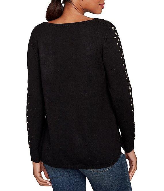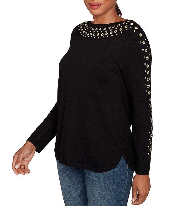Ruby Rd. Gleaming Grommet Embellished Fine-Gauge Boat Neck Sweater