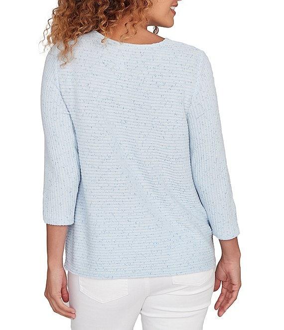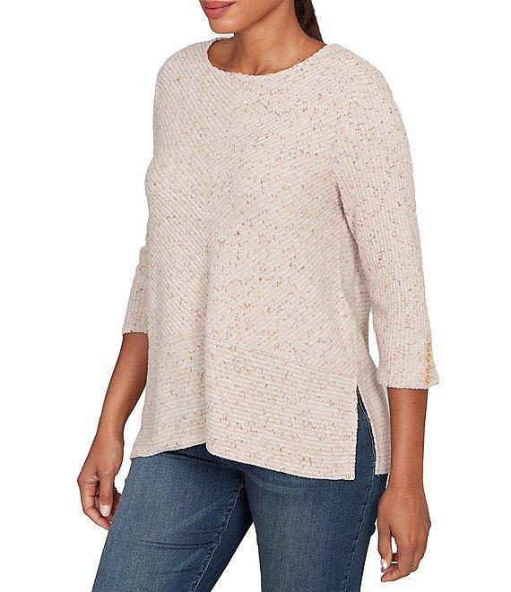 Ruby Rd. Heather Speckeled Ribbed Knit Crew Neck 3/4 Sleeve Side Vented Top
