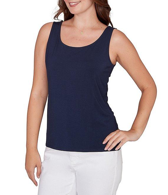 From Ruby Rd., this tank features: Jersey knit fabrication Reversible neckline Sleeveless Wear the scoop neckline in front or flip it for a v-neckline Fitted Straight hemline Pullover construction Modal/spandex Hand wash cold Imported. Double the style, half the effort. This tagless soft stretch jersey tank features a reversible neckline: wear the scoop neck in front for a classic look or flip it for a sleek V-neck. Designed for layering or solo wear, its the versatile wardrobe essential every closet needs. Lightweight, breathable, and ultra-flattering, this tank top easily transitions from day to night, office to weekend.