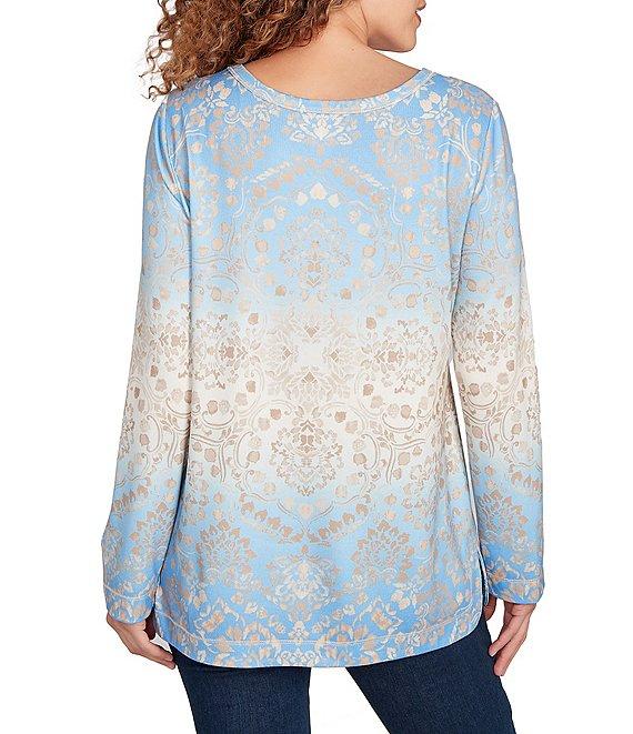 Ruby Rd. Knit Medallion Scoop Neck Long Sleeve Top